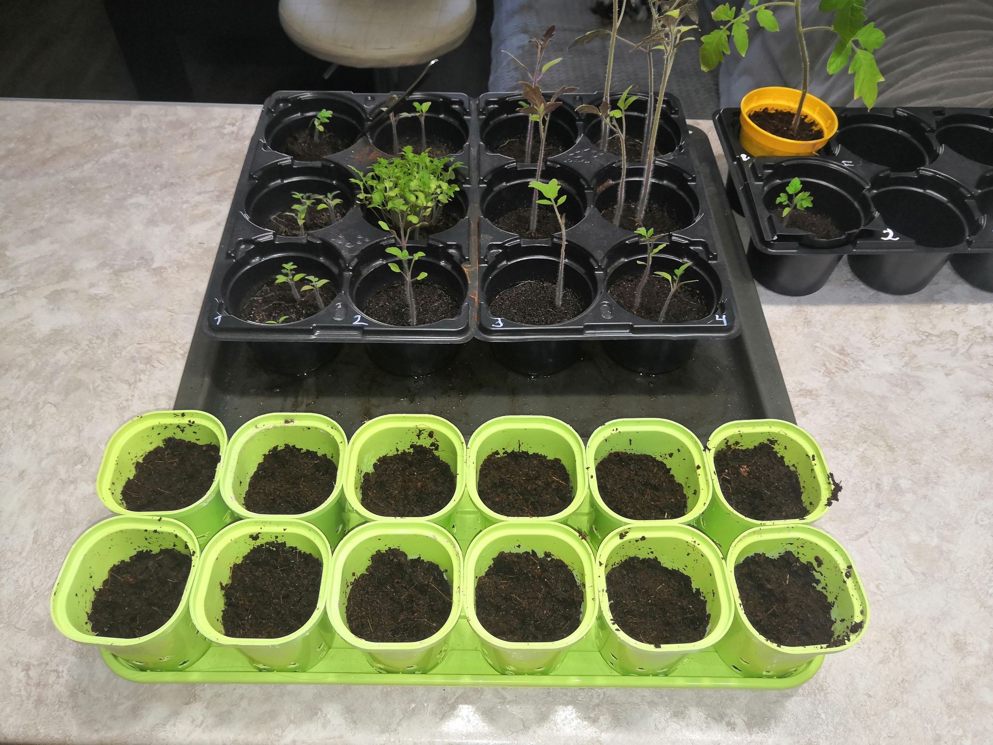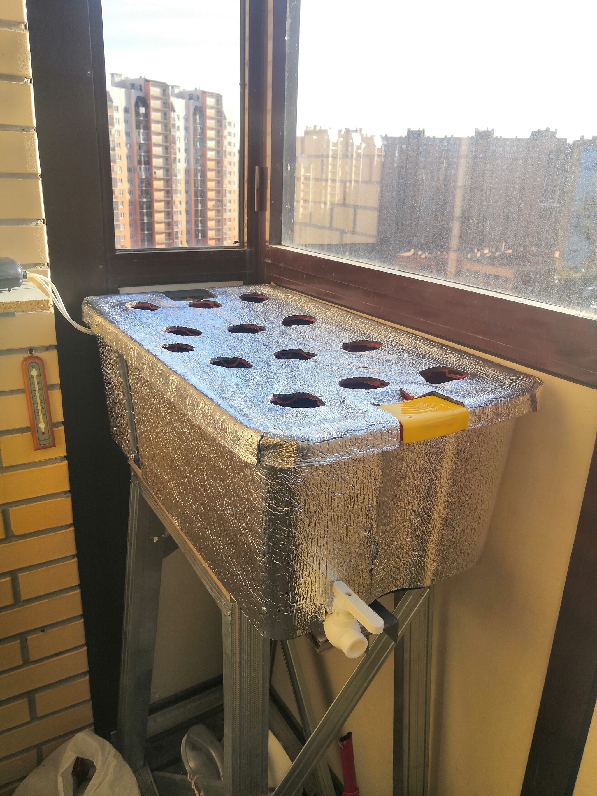 К концу апреля рассада в нужном количестве (по 3 растишки каждого сорта, а некоторых и больше) в-принципе была готова к высадке в установку, но весна в этом году где-то задержалась, и температура на балконе даже днём не поднималась выше 18 градусов.