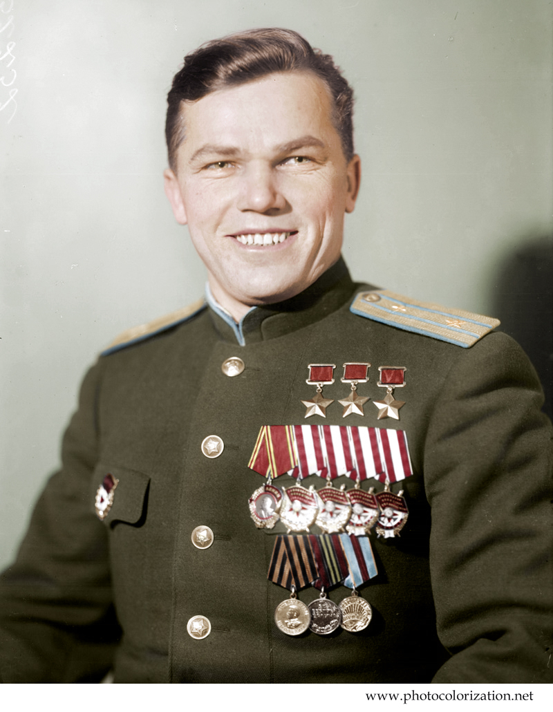 398 kostas26 История Моя колоризация " Трижды Герой Советского Союза Иван Никитович Кожедуб" 9 лет назад [моё] Колоризация Photoshop Иван Кожедуб Великая Отечественная война Летчики Длиннопост