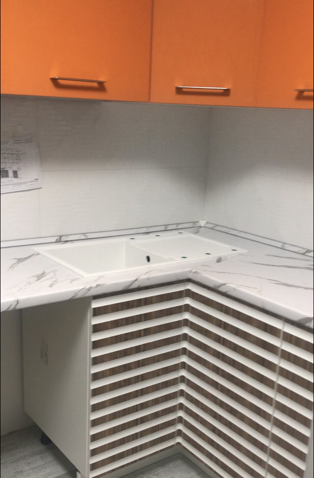 Должны менять, но не торопятся.... они и так по срокам нарушили обязательства, так теперь ещё и по недостаткам рассматривают долго, а замену поврежденных шкафов минимум 2 недели ждать... но самое страшное это столешница, которую они, как я понимаю, не хотят менять... на первом фото образец столешницы показываемый в салоне и на втором то, что поставили... и расцветка столешницы теперь с кухней не сочетается((((