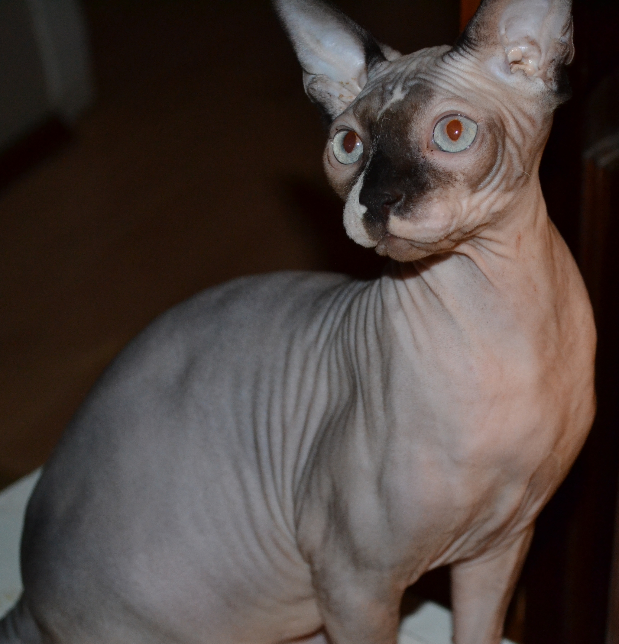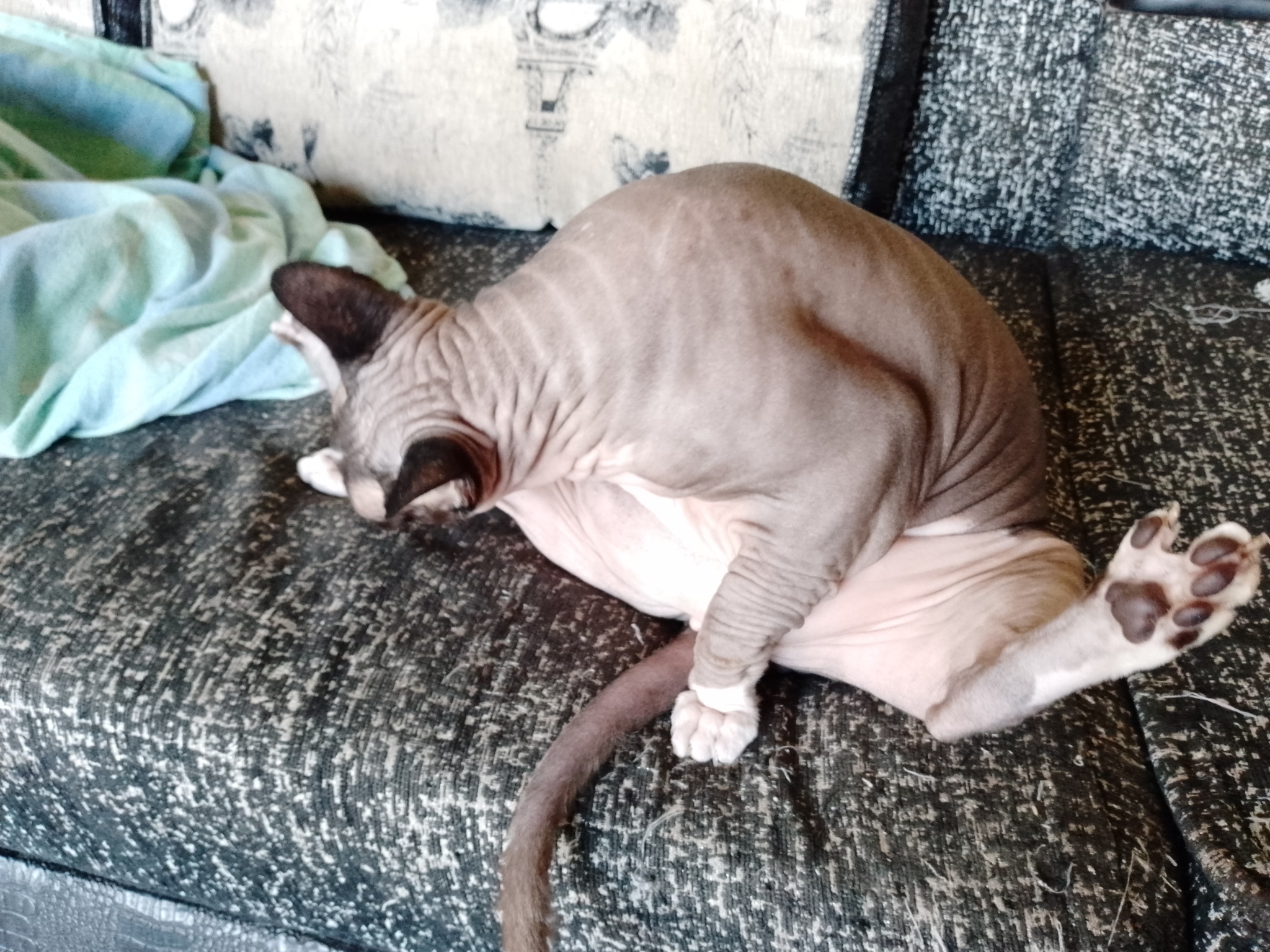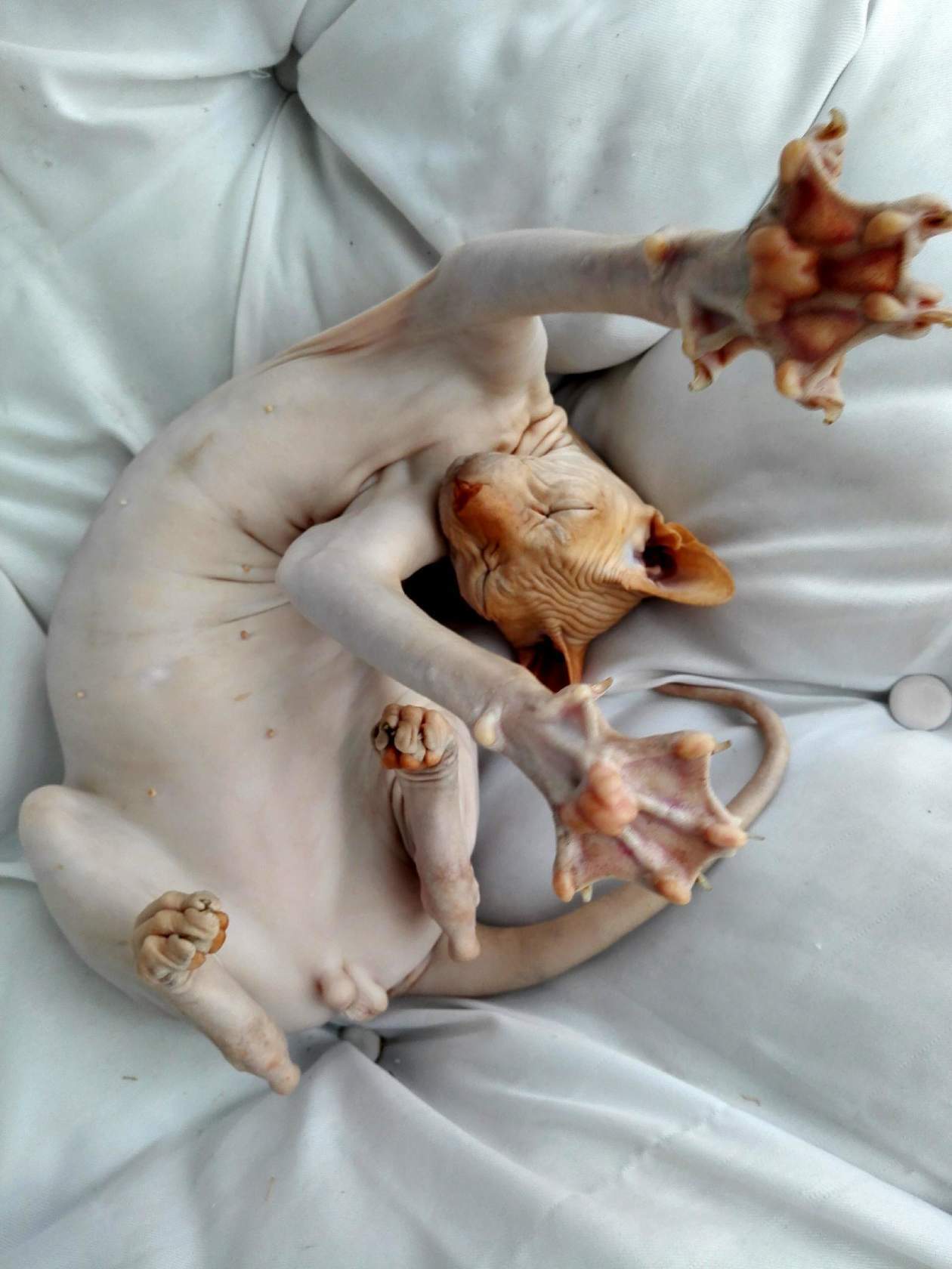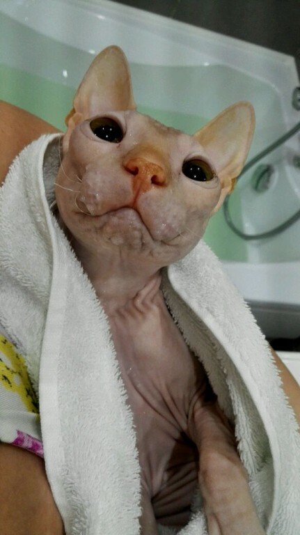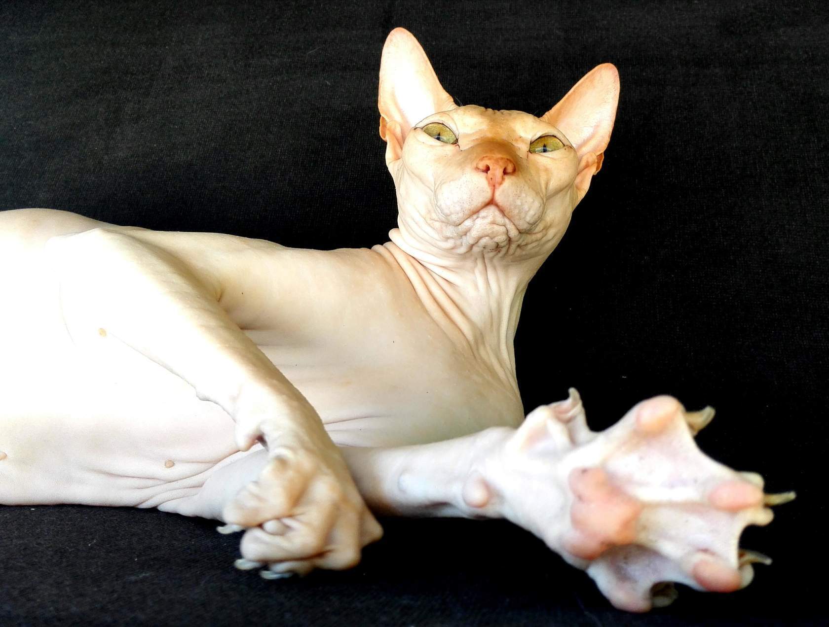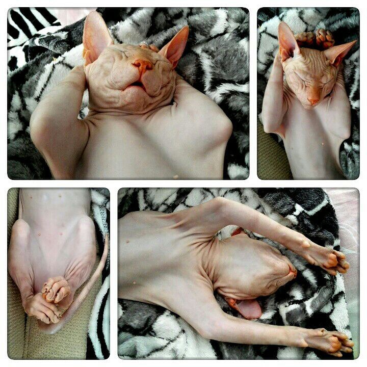 Интересно, какой он был. Потому что сфинксы разные тактильно. Вот герой поста - "резиновый", просто кожа без волосков. А второй наш сфинкс на ощупь бархатный, покрыт микро-волосками. И на ощупь совсем другой)
