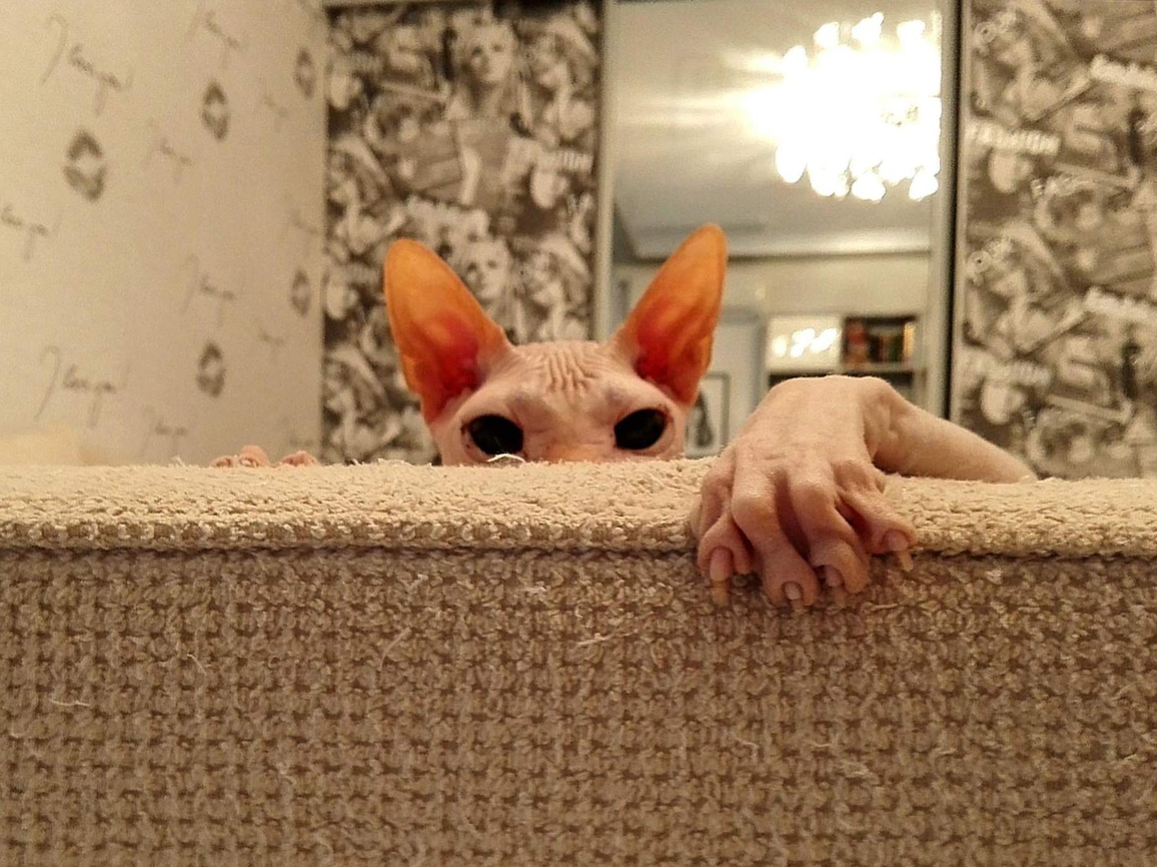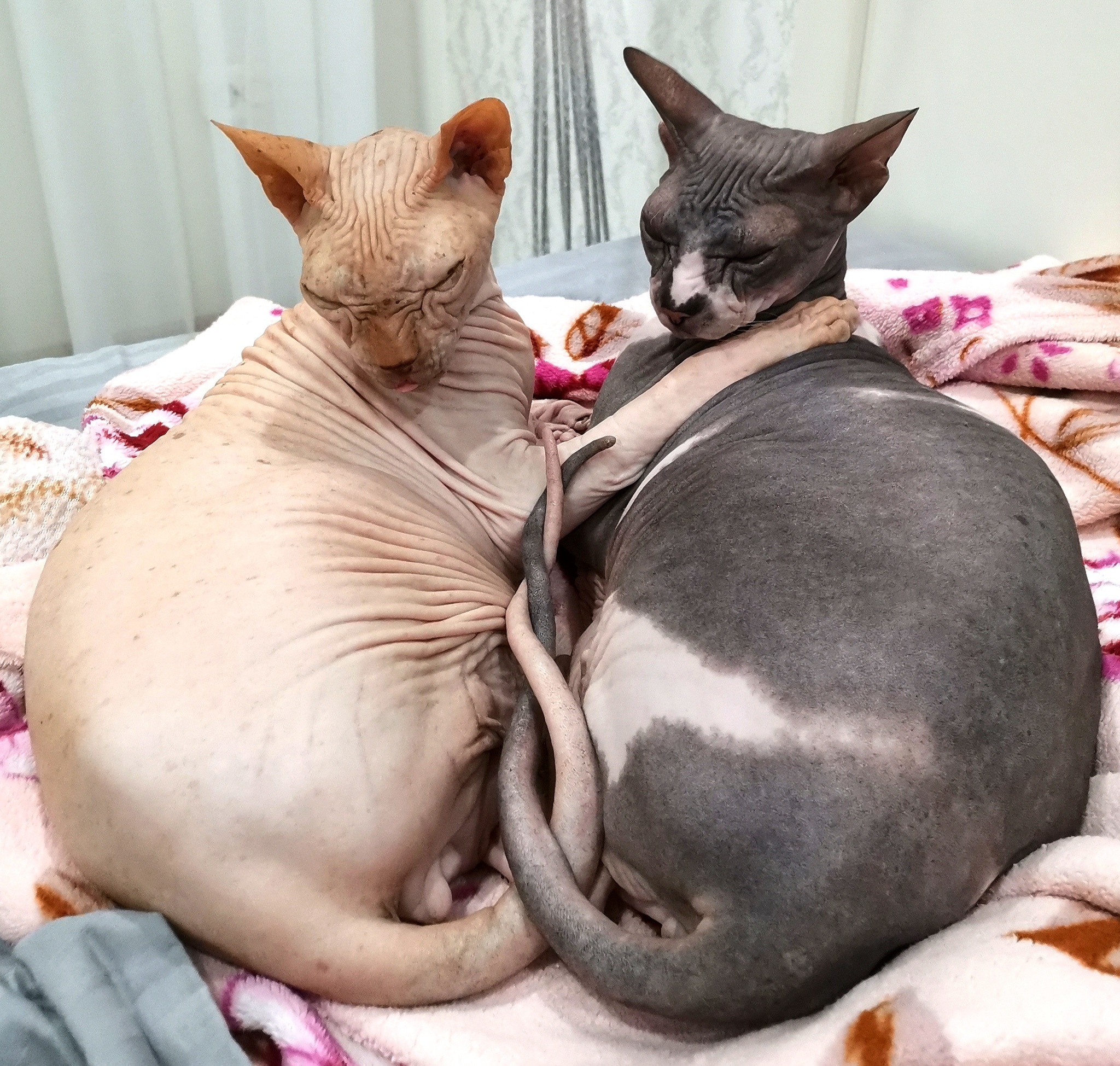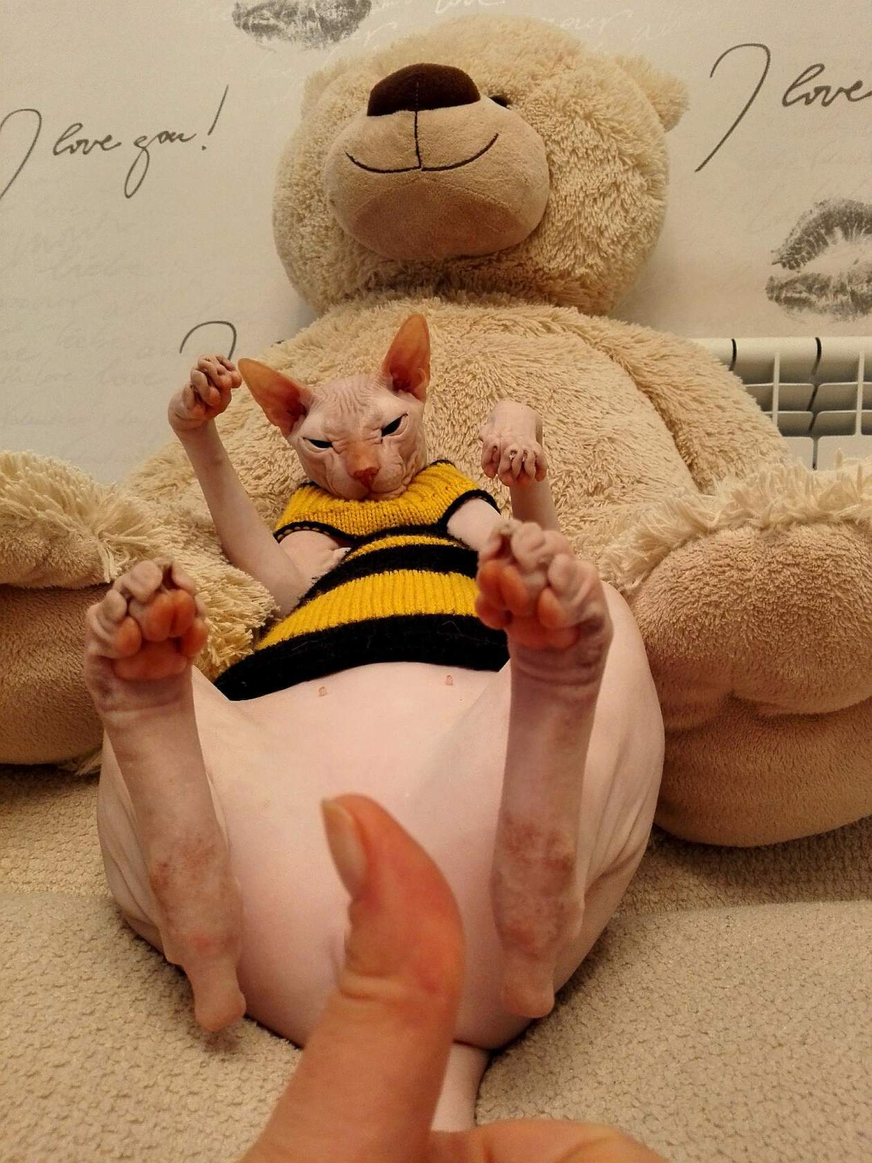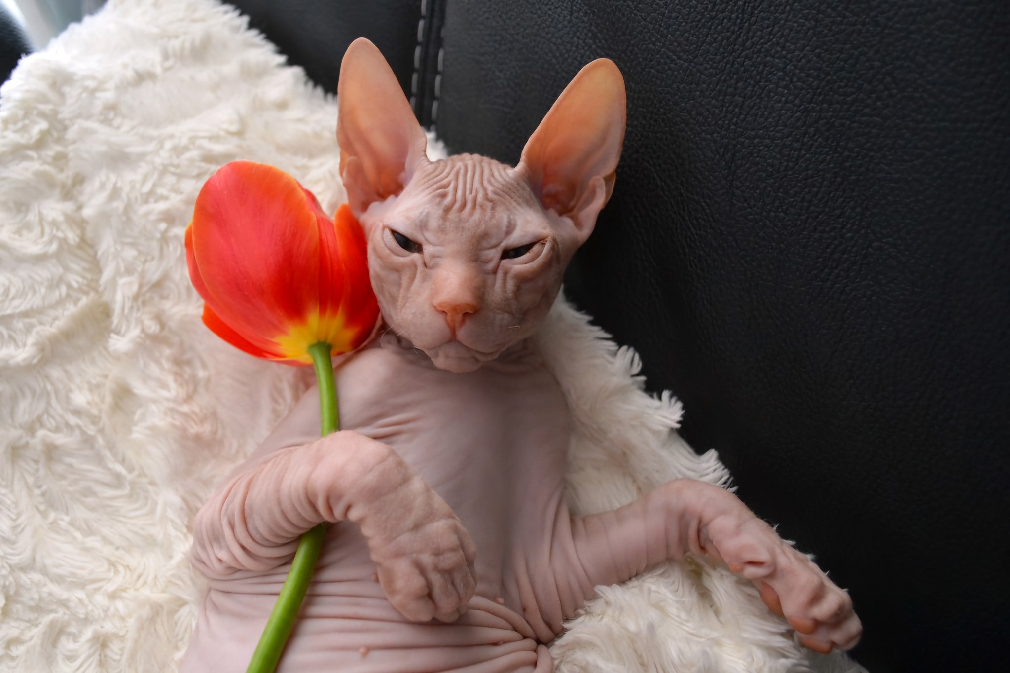 Интересно, какой он был. Потому что сфинксы разные тактильно. Вот герой поста - "резиновый", просто кожа без волосков. А второй наш сфинкс на ощупь бархатный, покрыт микро-волосками. И на ощупь совсем другой)