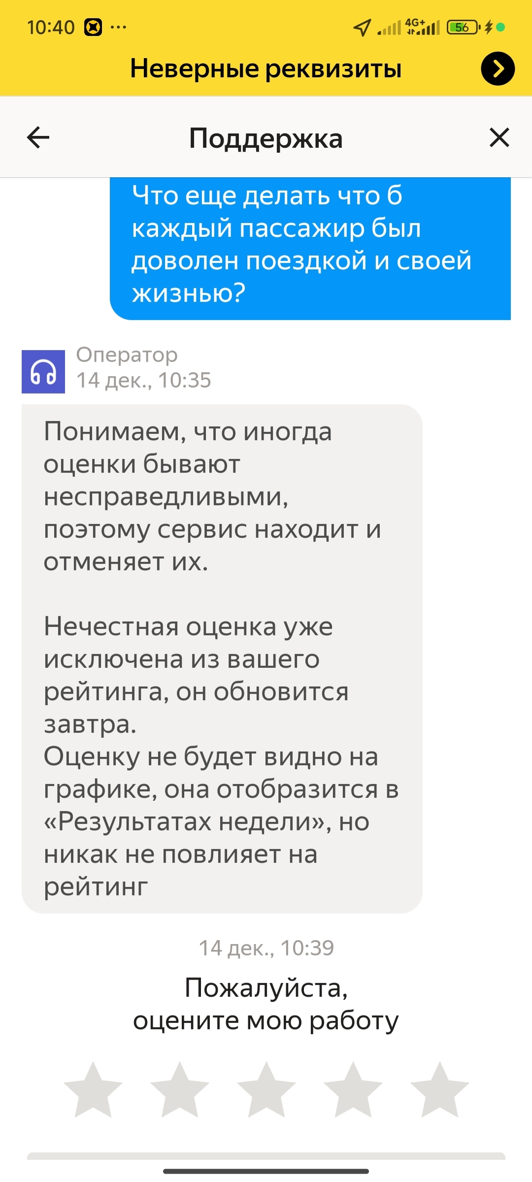 Работал как обычно! Никого даже на хуй не послал, и нате 1 звезда. Оказывается поддержка Яндекс Про умеет немножко в решение проблем.