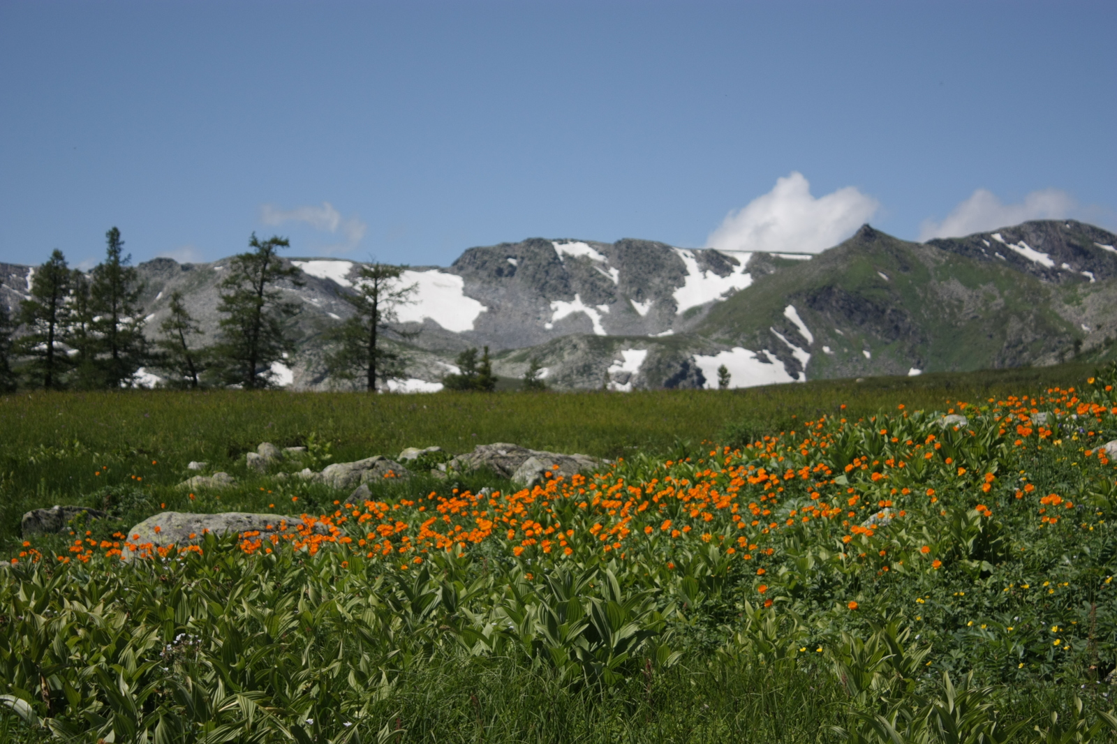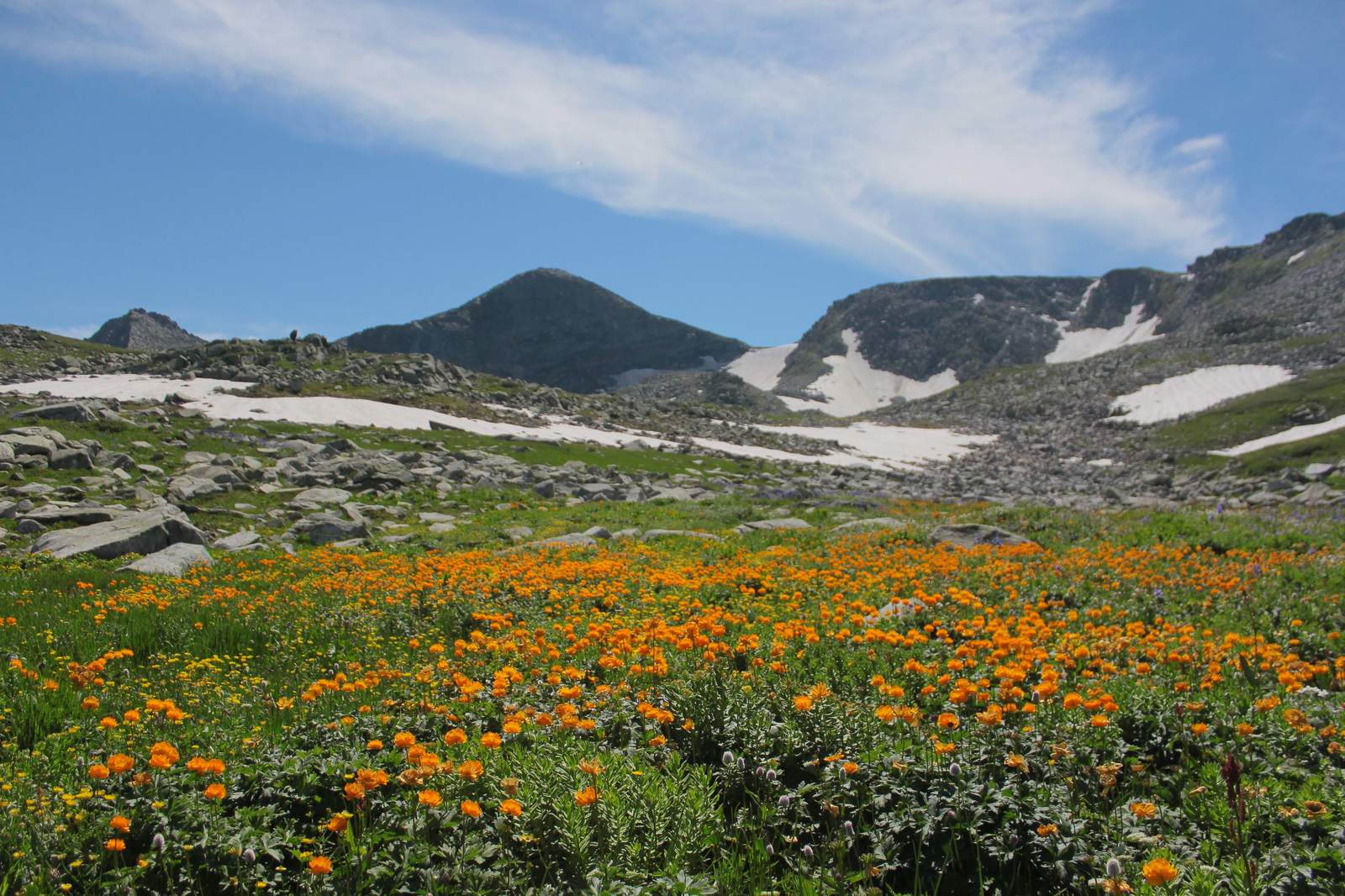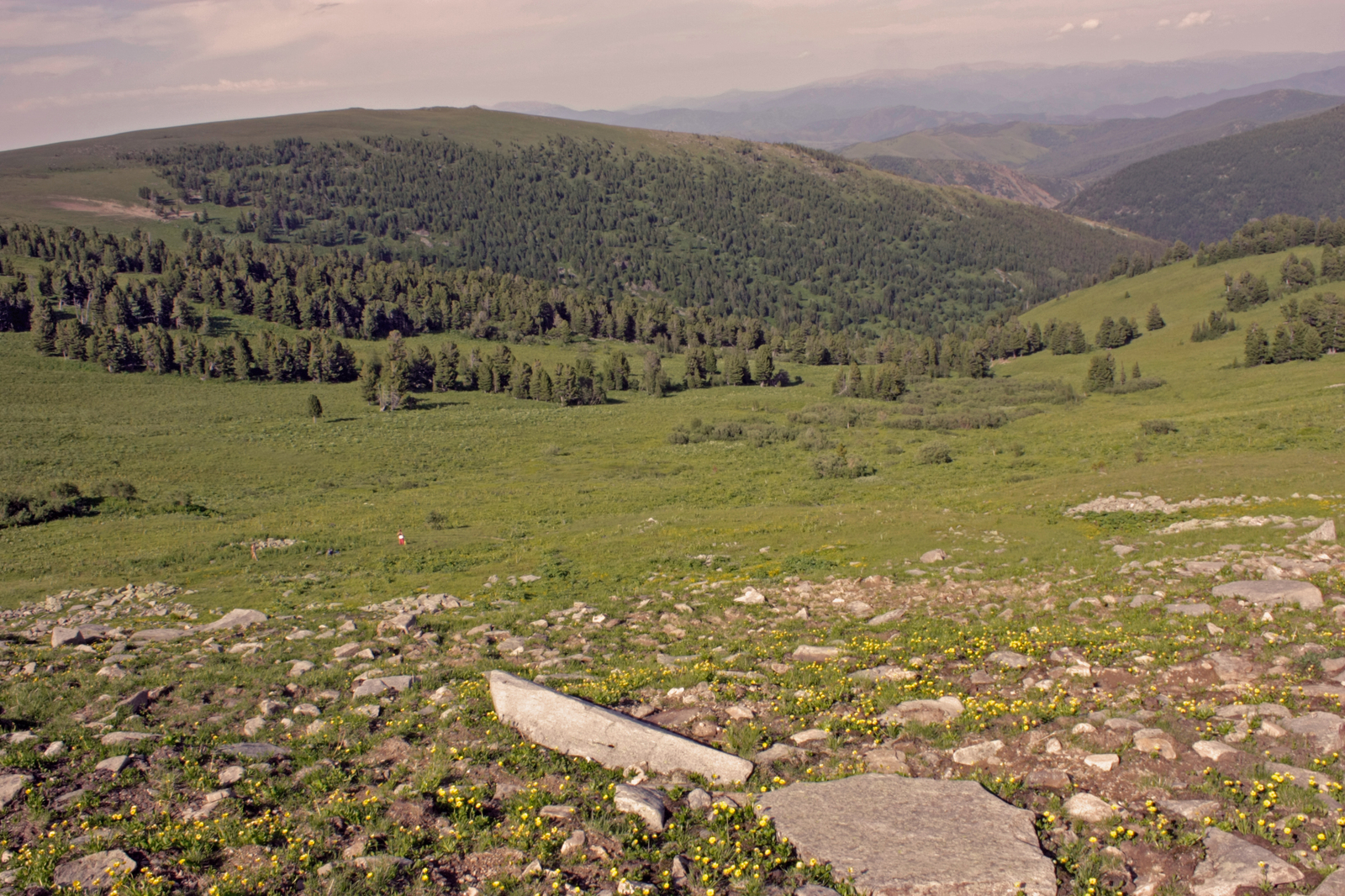 Начало альпийских лугов и каменного курумника. Желтые цветы лютика.