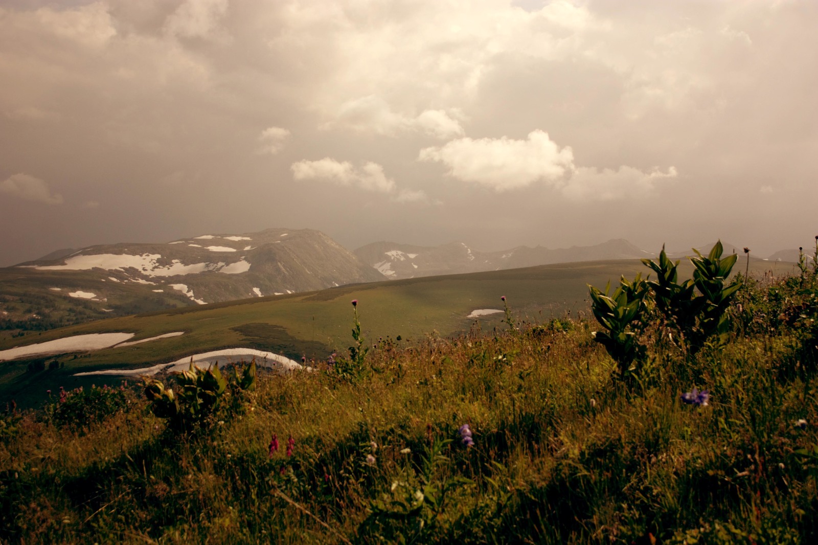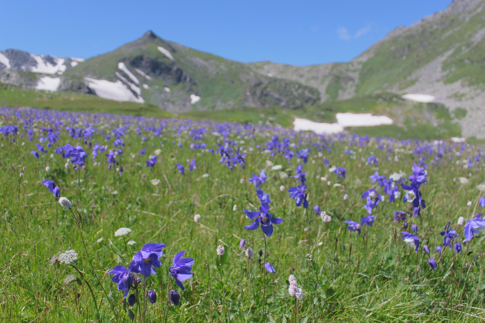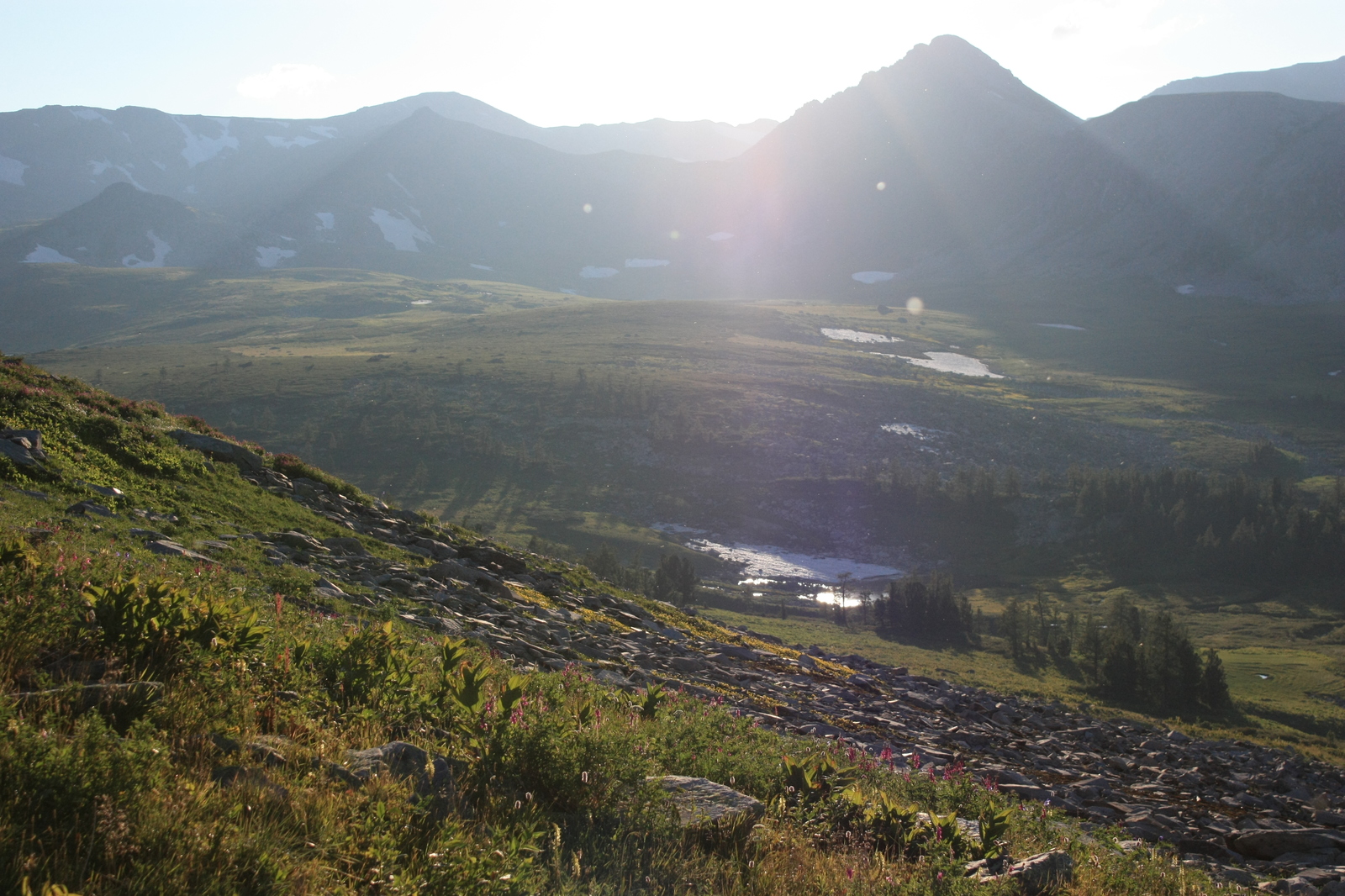 Начало альпийских лугов и каменного курумника. Желтые цветы лютика.