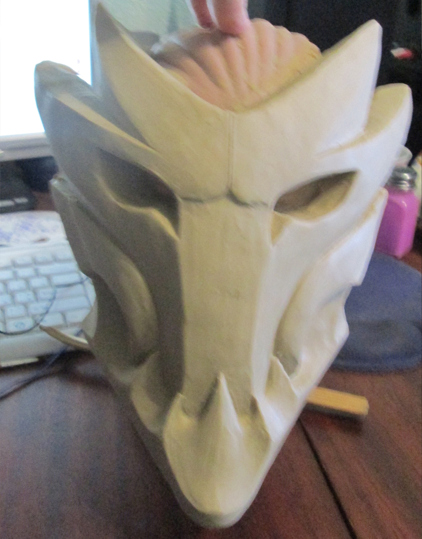 Делал по картинке, боковые уши/рога не стал делать в виду усложнения отливки маски с ними и сложности их крепления при отливке отдельно. Добавил потертости после покраски, так как очень чистая получалась.