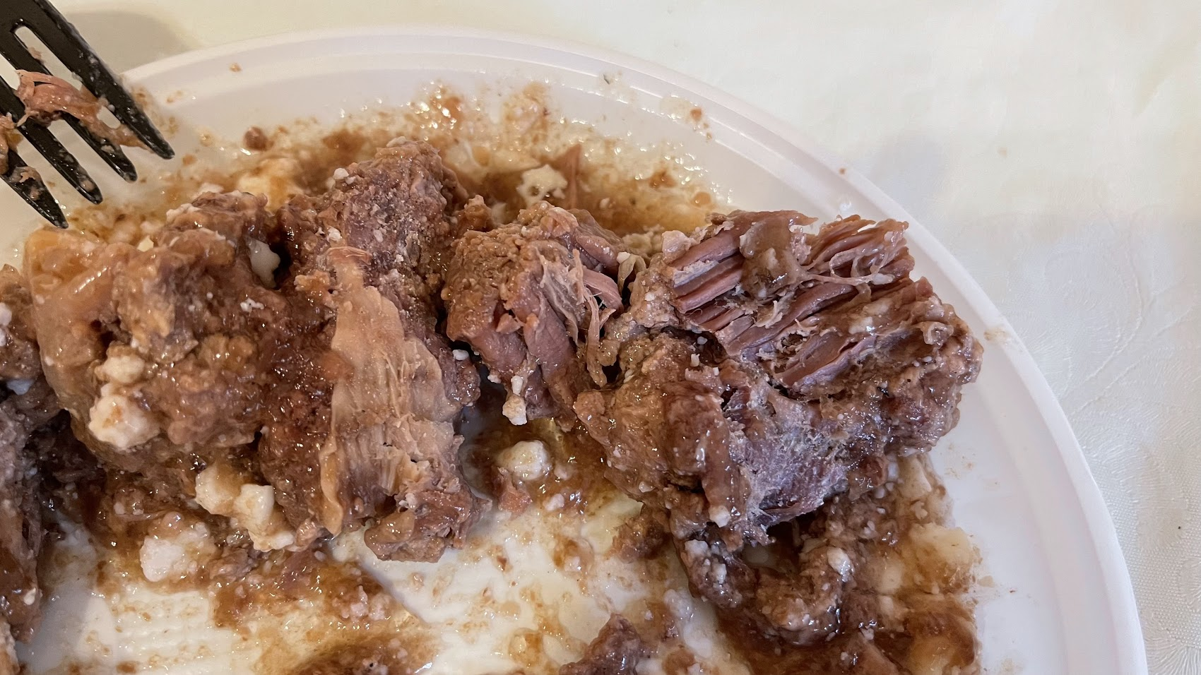При этом, если отделить и отложить всякую мерзость в сторонку, то по вкусу вкусно, жуется пусть и не так мягко, но вполне себе ощущается мясо, может с макарохами или картошечкой зайдет лучше. При этом есть части мяса, которые мягче, есть те, которые жестче. Не знаю, с чем связано.