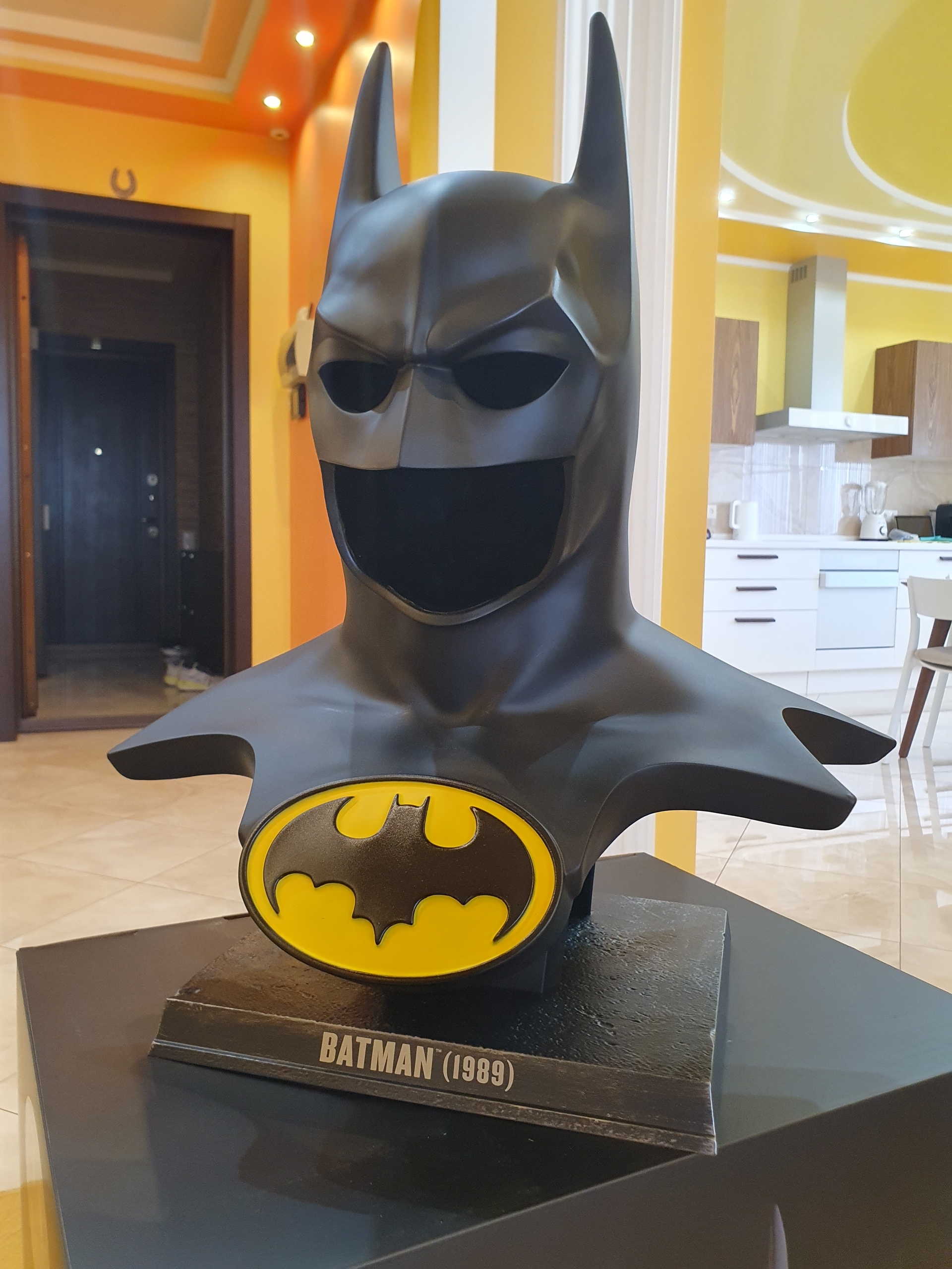 Приехала такая маска-бюст от McFarlane Toys "DC Direct Batman (1989) Cowl Replica 1:1 Scale". Выполнена в виде точной копии из того самого "первого" фильма Тима Бертона "БЭТМЕН"1989 года с Майклом Китоном в главной роли!