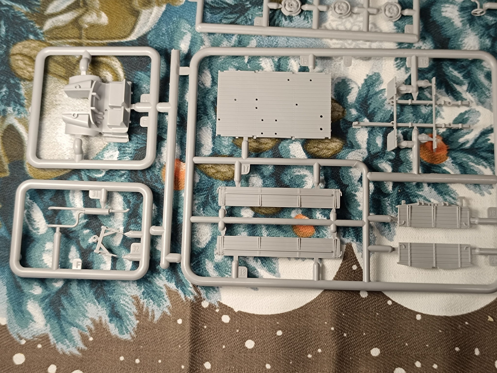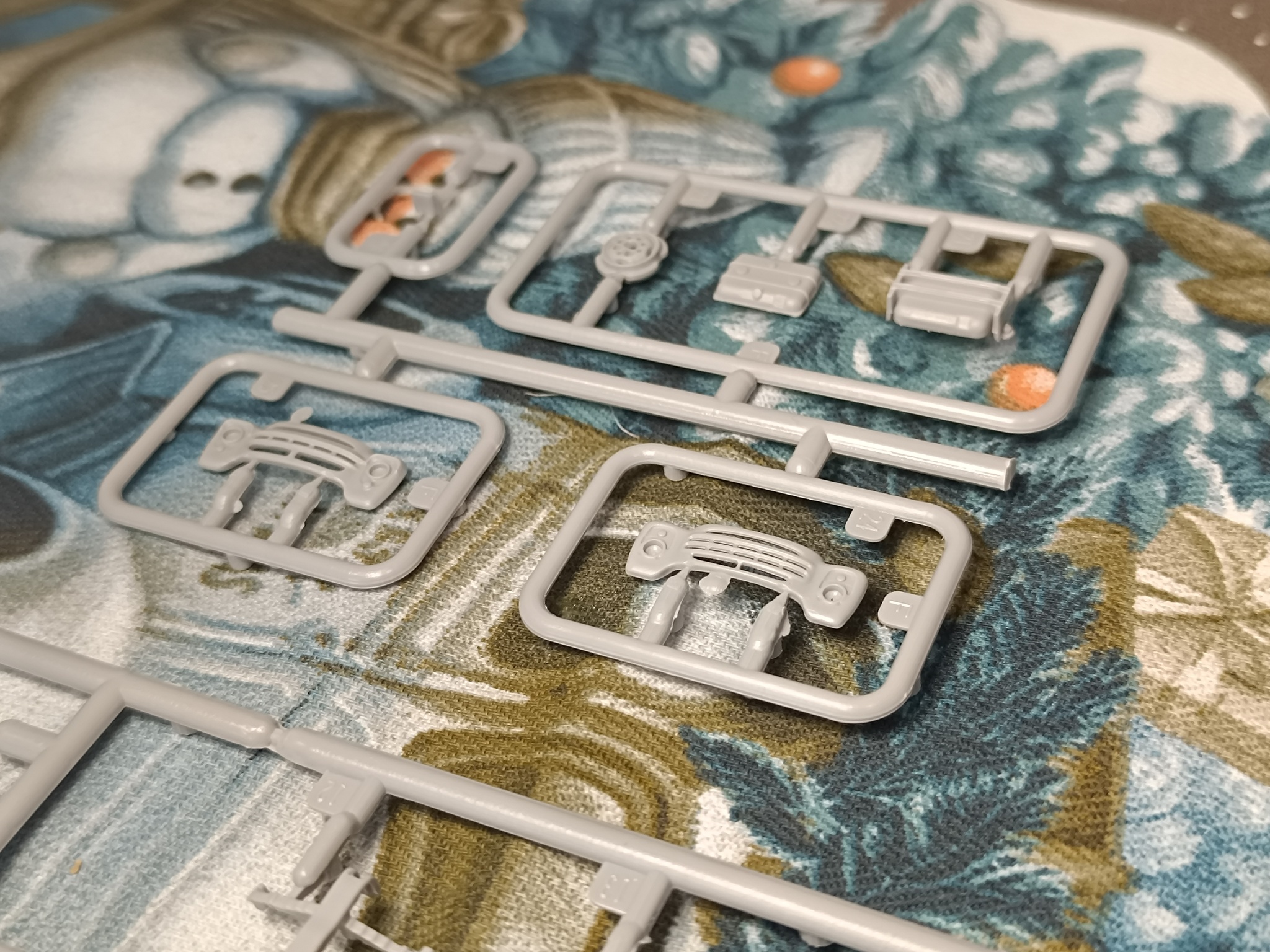 Оставшиеся детали размещены на трех литниках, плюс прозрачный литник с остеклением и отдельно вариант пола кузова.