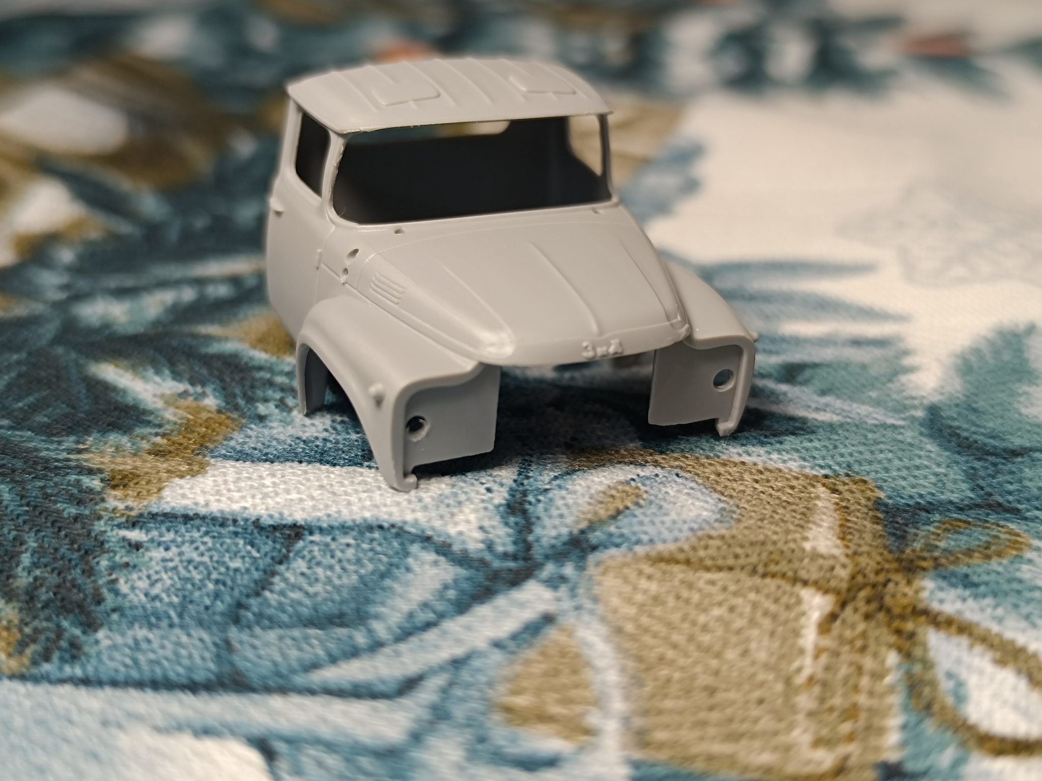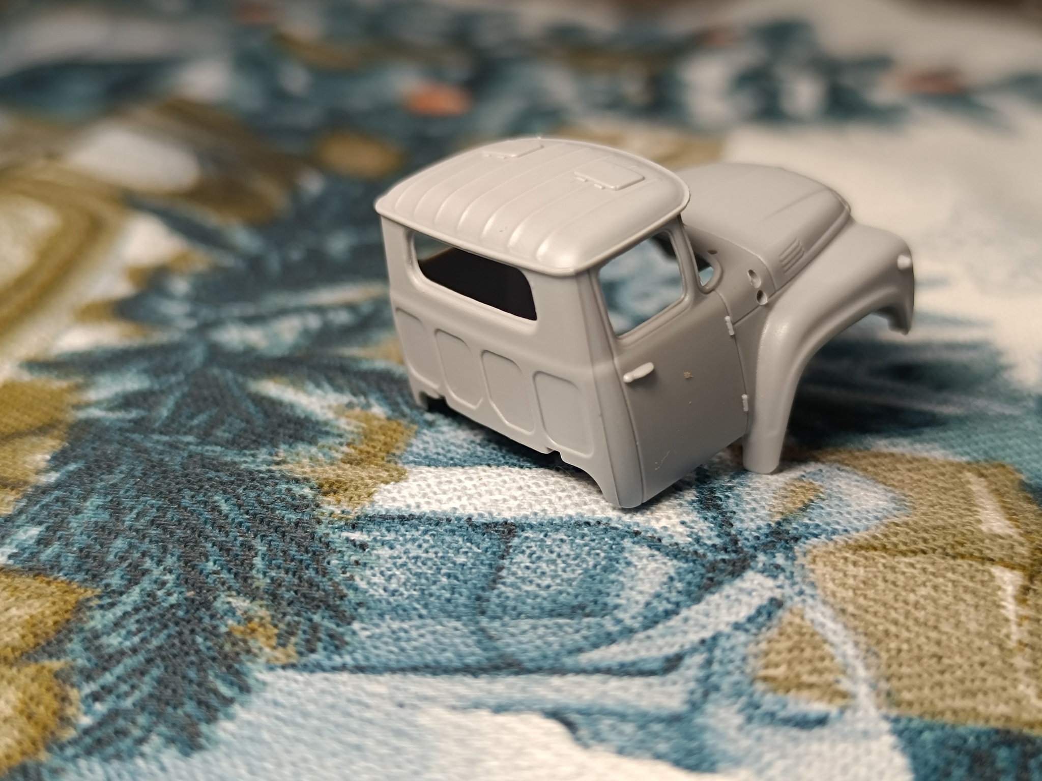 Кабина лежит отдельной деталью. Расшивка проработана нормально для 72 масштаба, но небольшие огрехи есть - например облой в местах установки кронштейнов зеркал, неровный край крыши справа и правой стойки А.