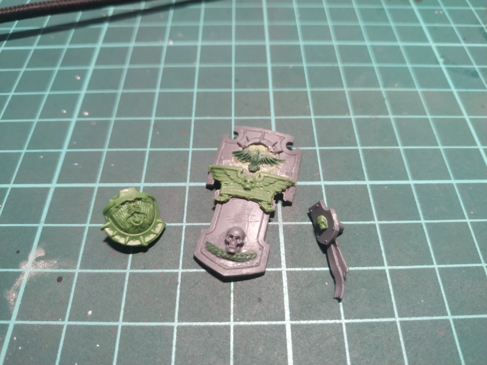 Что сделал: Перепилил щит, нанес эмблему на наплечник из зеленки, взял руки от блейдгвардов и перепилил их под плечи капитана.