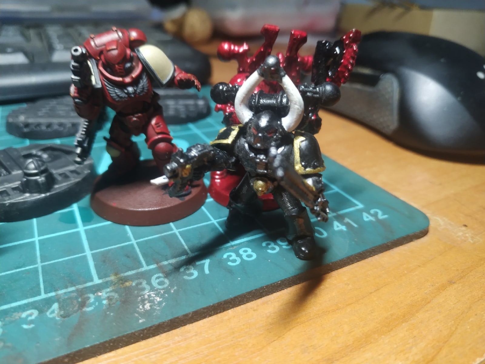 Одна из любимых мною миниатюр. Предыстория такова, было у меня по 2 Капитана и Лейтехи из Индомитуса. Первые были покрашены чуть ли не сразу как залез в хобби. Вторые лежали на литниках, и дернул же меня черт, отмыть покрашенное (не отмывайте миньки, если с бабками проблем нет).