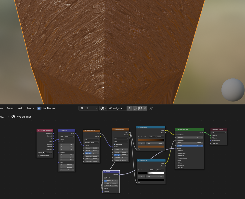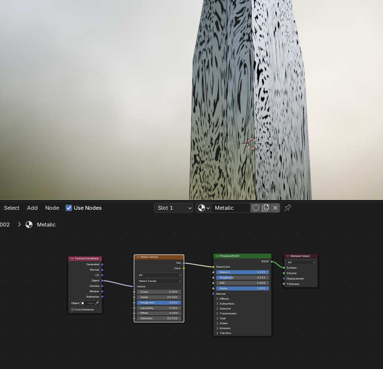 Начал новый урок по нодам и текстурированию без текстур. В последней версии удалили Musgrave texture. И тут у меня появился затык. Если текстуру дерева ещё смог сделать с помощью замены Musgrave texture на Noise Texture. То с металлом не вышло. Как мне быть?