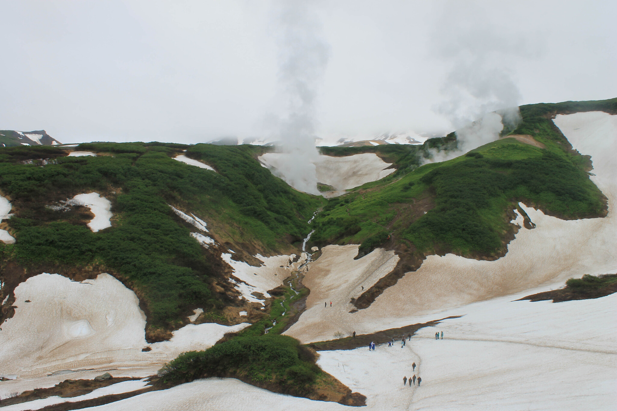 На третий день поездки погода улучшилась, и можно было увидеть визитную карточку Петропавловска-Камчатского - "Домашние вулканы" - Авачинскую группу вулканов