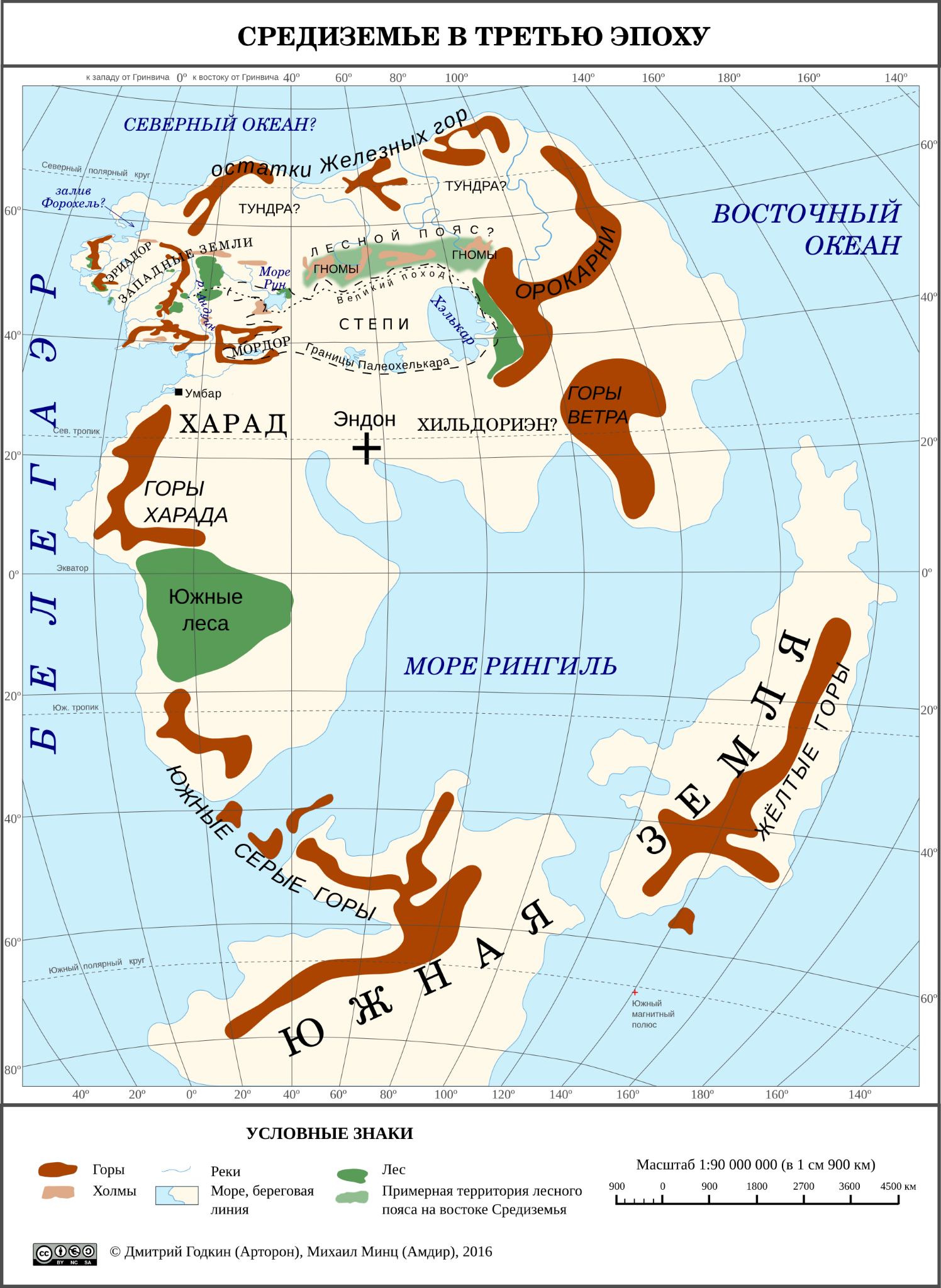 Карта Средиземья, в этот раз не стал лезть в перевод названий и сделал все на языке оригинала.