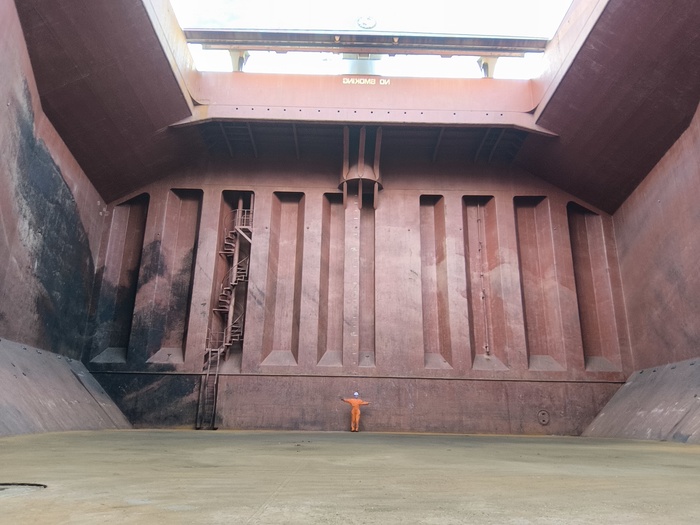 Приехали из Китая в восточную Африку, выгружаем генеральный груз, что необычно для навалочного типа судна, когда груз насыпается прямо в трюм.