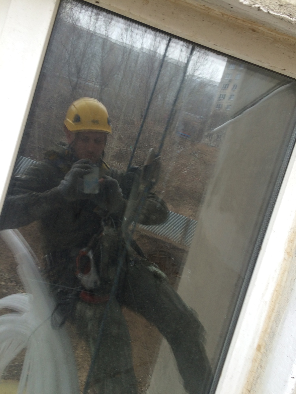 p.s. в бахилах не всегда, просто на данном объекте есть зоны облицованные белыми металлическими пластинами, которые нам по идее мыть не надо, но полоски от обуви на них остаются только так.