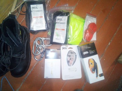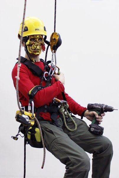 Для работ на высоте необходимы две веревки- основная ( статическая) и страховочная (по-хорошему динамическая, она легче амортизирует в случае рывка, так как специально под это заточена, на деле тоже статика),спусковое устройство, страховочное устройство, страховочная обвязка и устройство подъема-жумар. Каска- без каски работать нельзя- или ТБшник зашибет или сверху чем-нибудь зашибет.Ах да, карабины. Карабинов мало не бывает)