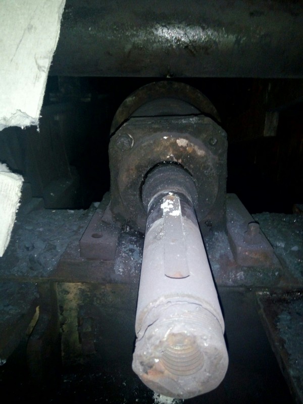 Это муфта шлеппера, он сталкивает заготовки с шлепперного поля на стол накопитель. Ее мы варим уже 2 месяц. В апреле не было ремонта, что бы заменить ее(новая лежит на складе) а когда были ремонты в марте то приходили 2-3 бригады и нужно ставить их на что то более важное.