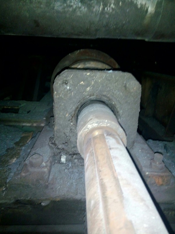 Все 30 роликов фоткать смысла нет. Видно что фланцы изношены, в подшипники летит окалина, пыль и так далее. Смазка вносится вручную, во время ремонтов. Болтов нет, потому что их впринципе нет нужного размера. Централизованную смазку потеряли лет 6 назад. Подшипники новые ставим в эти буксы на старые ролики, и убиваем подшипники. Так же и с роликами, новые ролики собираем на старых подшипниках и убиваем ролики. Потому что, да просто потому. Из 30 роликов 10-12 укомплектованы редукторами. Которые работают практически без масла. Мы доливаем оно вытекает.