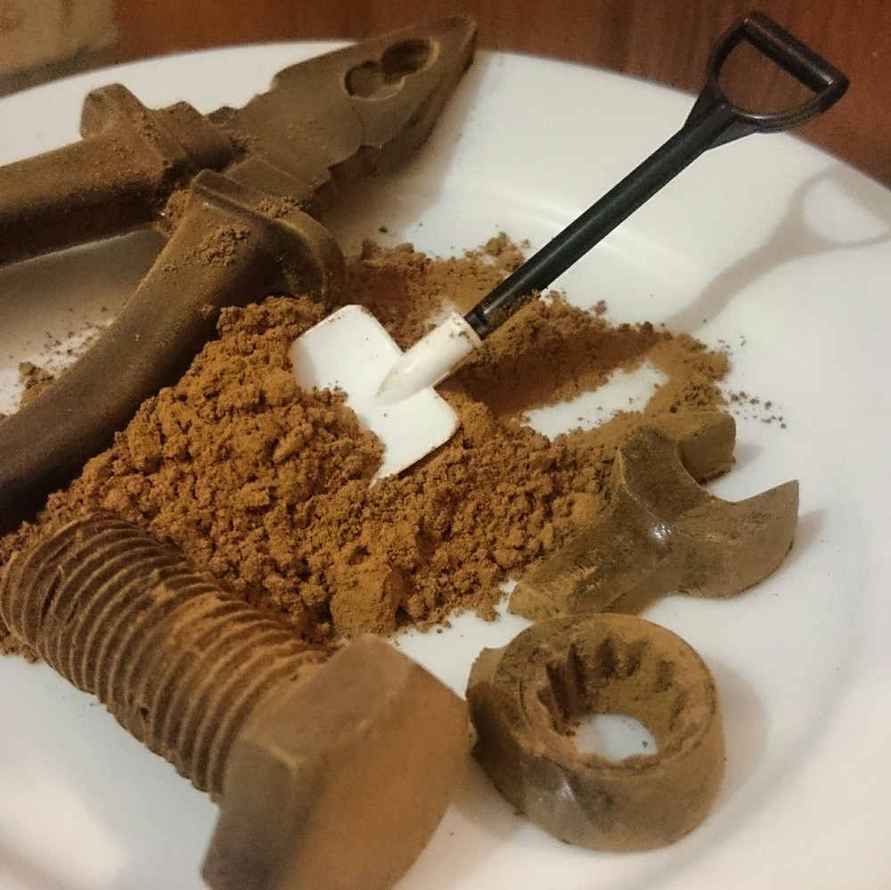 Пошли первые заказы. Появилась большая ответственность. Ведь наш городок в 130 тысяч не давал права на ошибку. Шоколад я делала ночью, пока домашние спали. Хочется сказать, что это очень увлекает. Я заказываю шоколад в капсулах одной известной бельгийской шоколадной фабрики. Темперирую (могу подробнее описать, если нужно), заливаю в формы и добавляю орешки, ягоды, фрукты. Мне захотелось разнообразить немного ассортимент, Заказала ещё формы. Так у меня в арсенале появились и шоколадные инструменты, которые сейчас очень у меня популярны среди заказчиков.