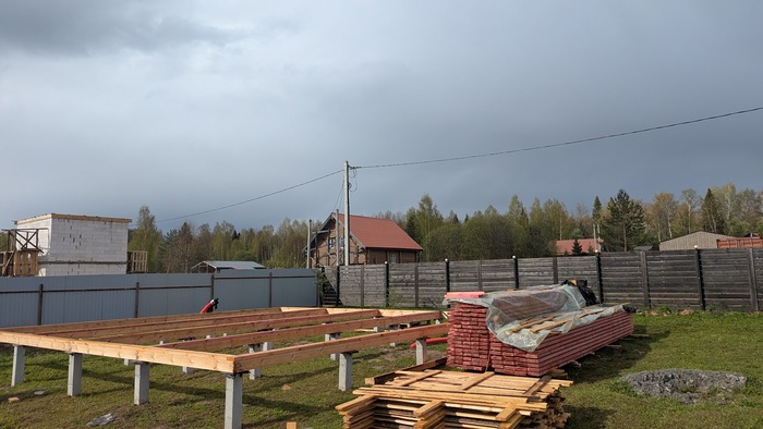 Собственно это текущее состояние стройки. Далее будет идти возведение каркаса несущих стен. Только пока этим не дает заняться погода, каждый день идут дожди :)