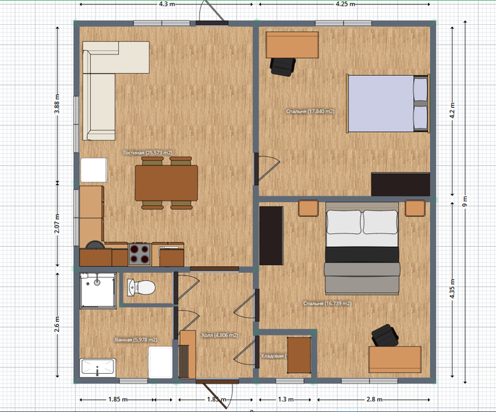 Теперь об этом строительном сезоне. Было принято решение строить летний дом с возможностью зимнего посещения. Технология - каркасный. Размеры - 9м на 9м по внешним стенам.