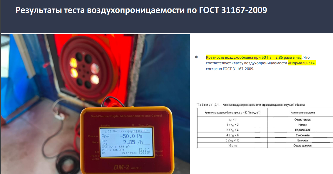 По итогу, вызвал аэродверь. Показатели по АЭ - 2.85 что-то там в час, спустя часовую продувку на -50Па
