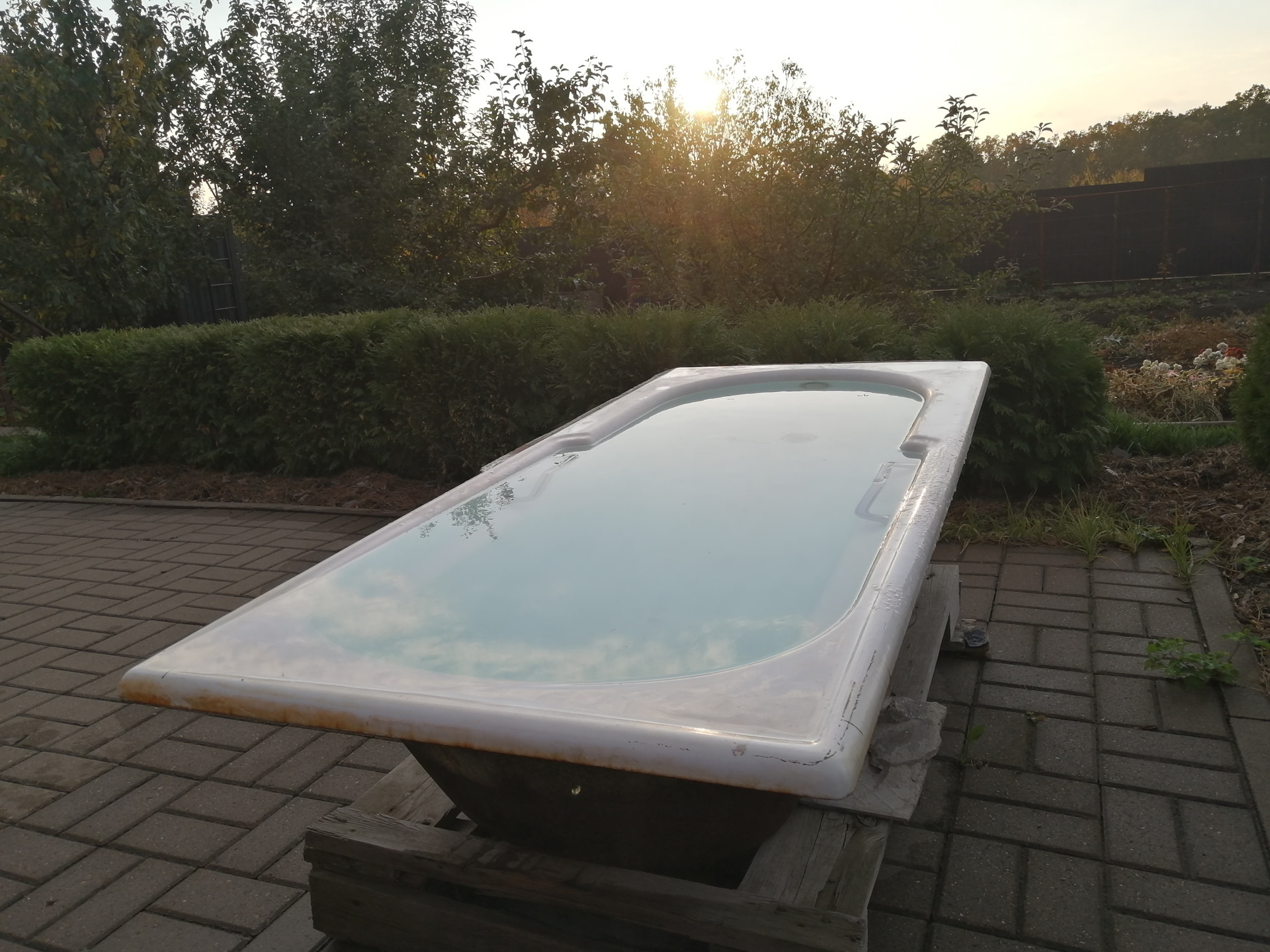 Набираю ванную воды. Это моя импровизированная купель уже как пару лет. На улице днем 10 градусов, вода не греется, как летом. После парилки можно занырнуть.