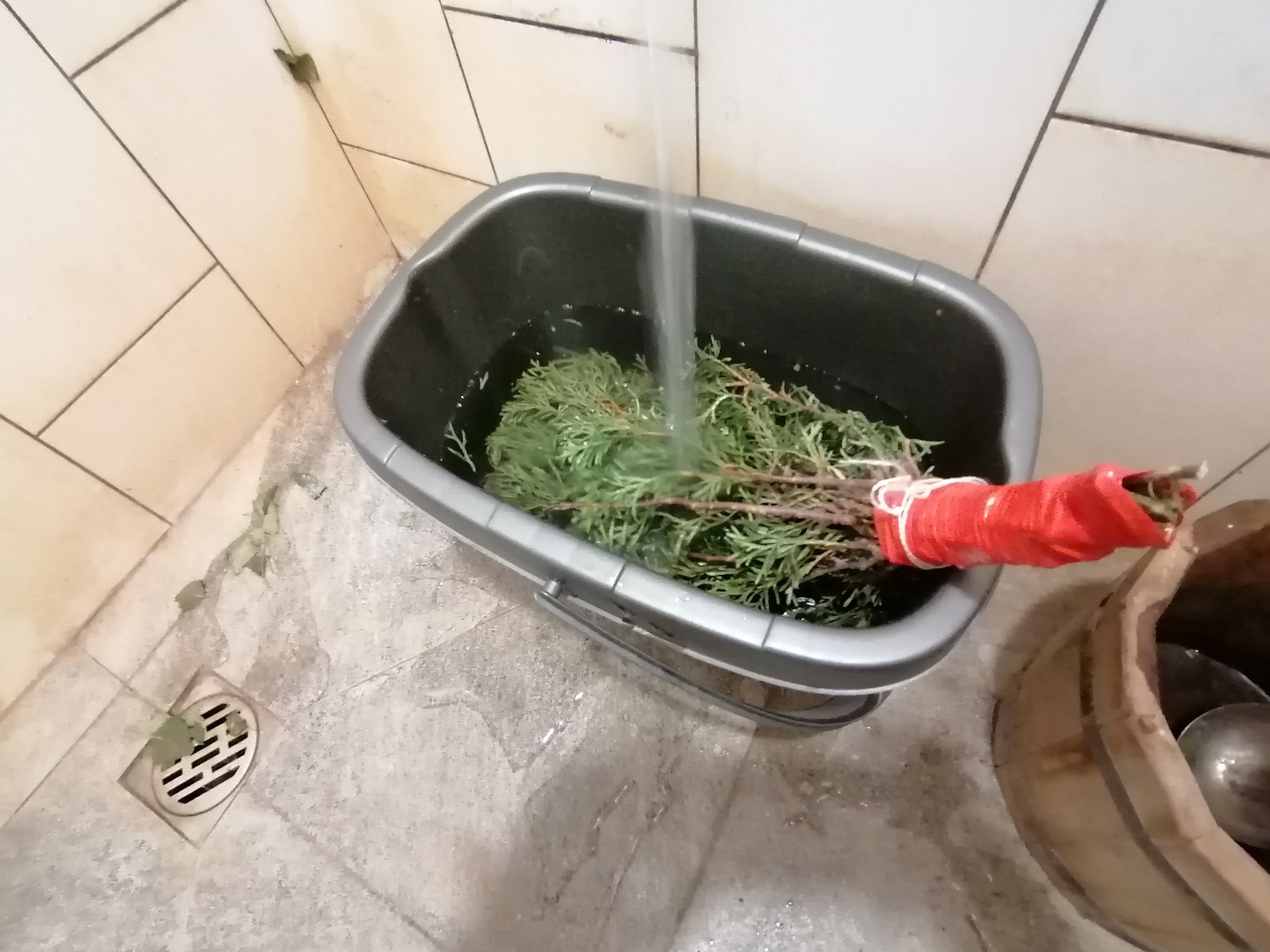 Запариваю можжевеловый веник.