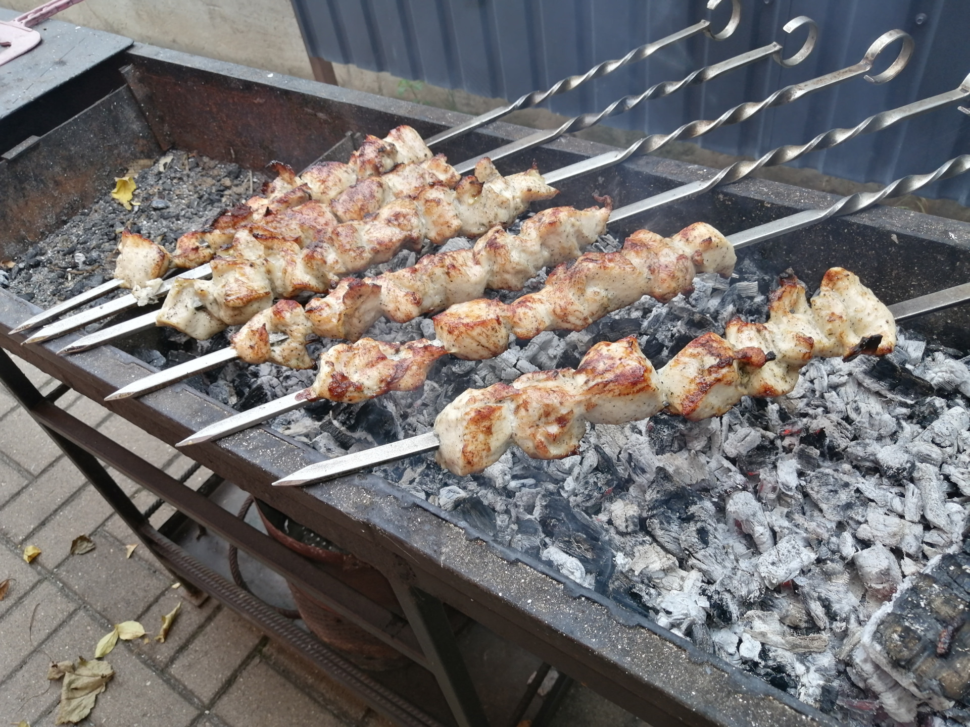 Готовлю шашлык из курицы. Обедаем заранее, до бани. Что бы не так тяжело было париться.