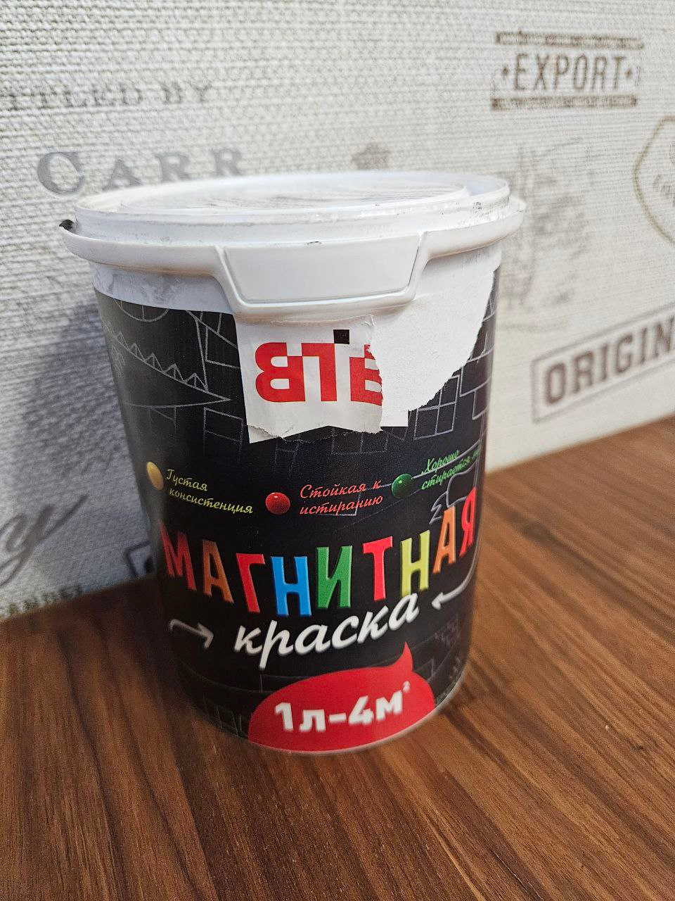 Все-таки на 4 раз прохожусь магнитно-грифельной краской. Просто грифельная краска тоже пришла, Дед Мороз ее сегодня заколеровал, пришлось превысить норму в 4 раза, чтобы добиться хоть какого-то адекватного цвета, надеюсь, что краска от этого не скажет до свидания.