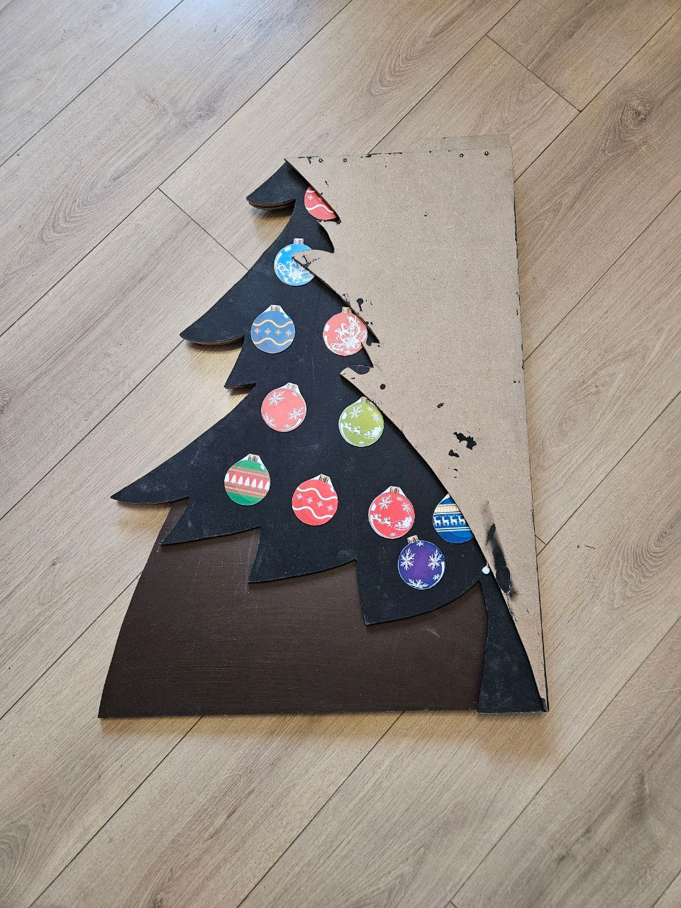 Примерно за месяц до нового года мне в голову стукнула мысль "а почему бы не сделать большую плоскую елочку для жителей дома в подъезд?".