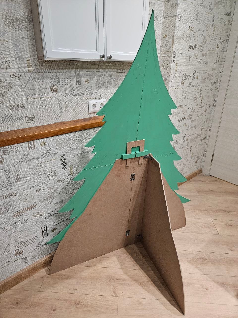Пришлось корректировать и тут жизнь внесла свои коррективы. Я просто не могу увезти на машине большой лист материала, плюс совершенно непонятно как его потом хранить. Поэтому концепция в очередной раз меняется и теперь требуется делать складную елочку.