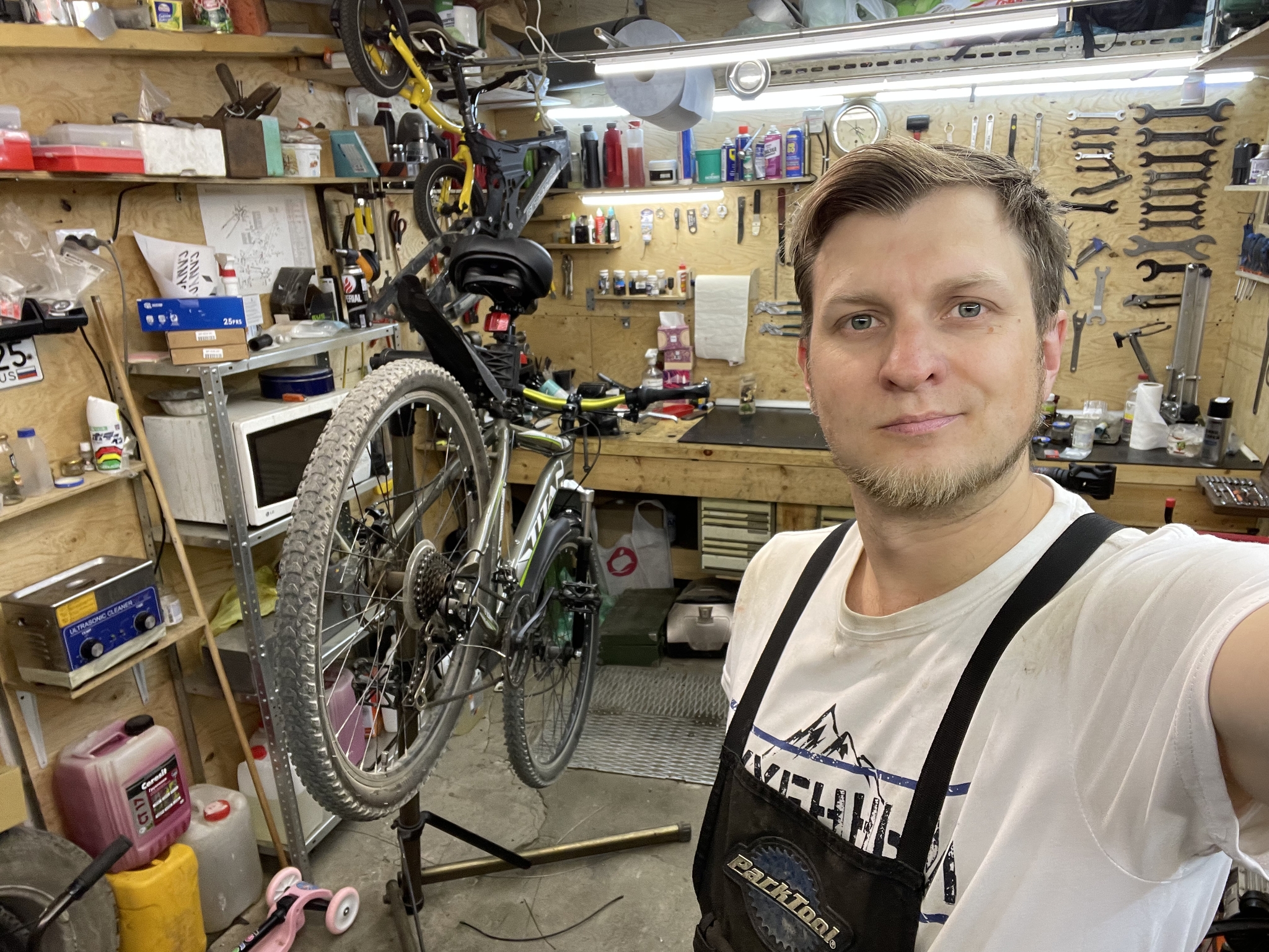 650 EbatKonaVLico Моя вторая работа 2 года назад На первой мне фотать низя, я занимаюсь ремонтом атомных подлодок и всякой подобной ерундой) А это отдушина, моя небольшая веломастерская. [моё] Волна постов Профессия Работа Мобильная фотография Велосипед Пикабушники Фото с работы 5 Ещё 0
