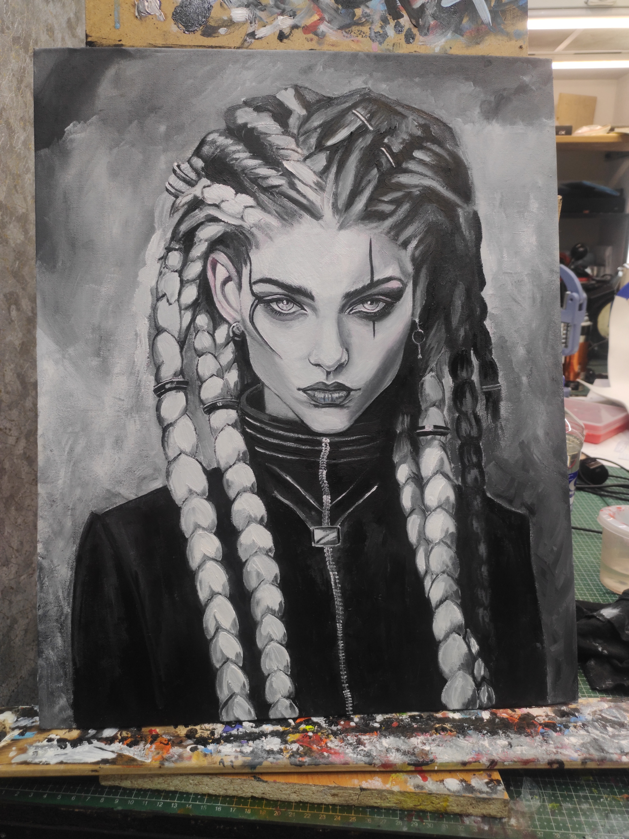Первый раз рисовал маслом. Картинку нашёл в пинтересте. Размер холста 50х40см. Очень непривычно после акрила, что масло долго засыхает. Пришел на следующий день и подкорректировал вчерашние мазки кистью. Необычно)