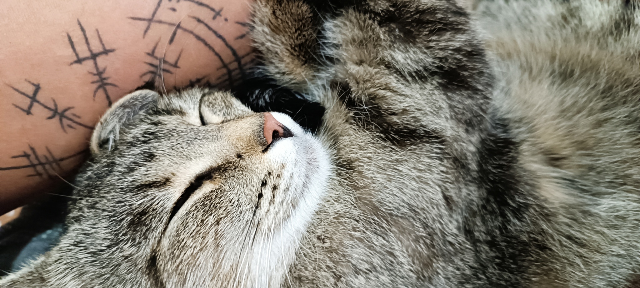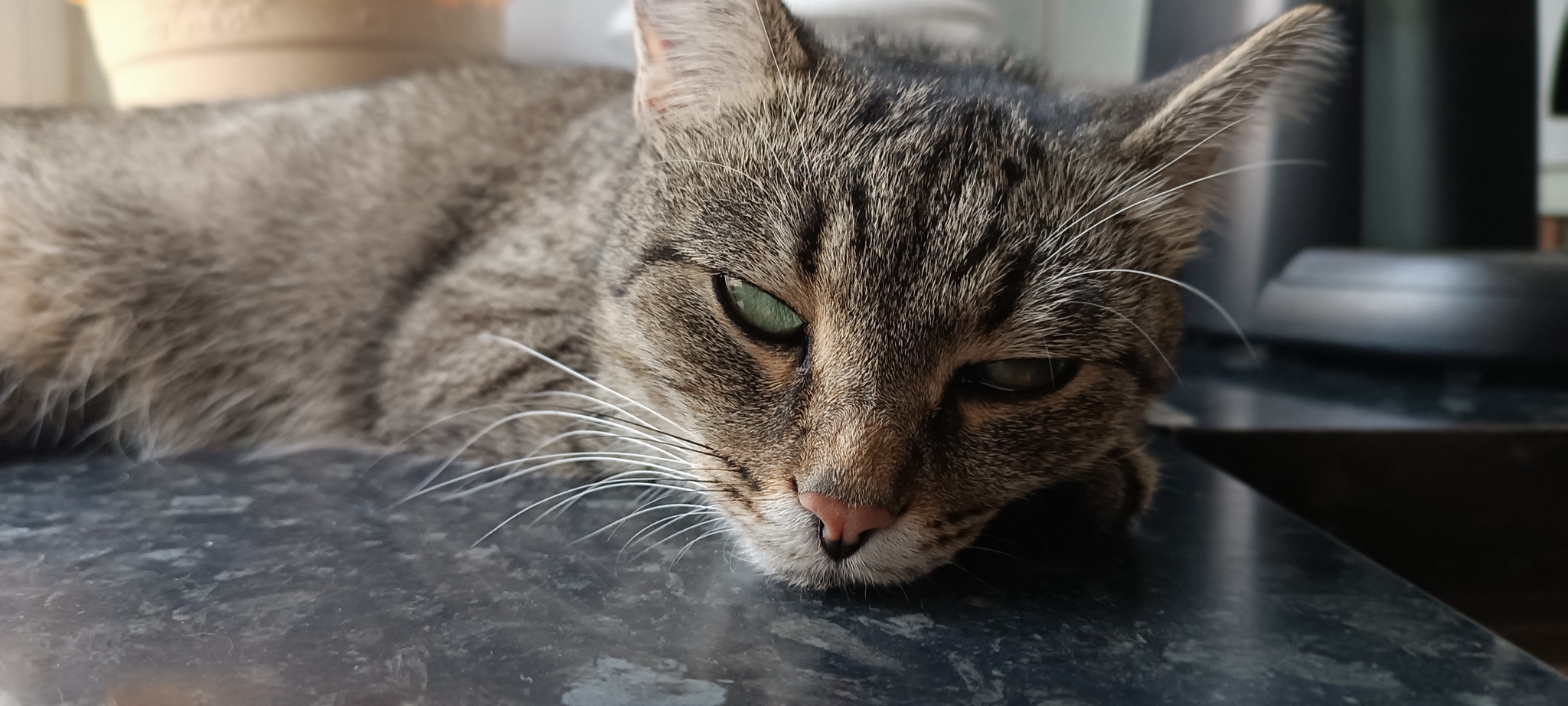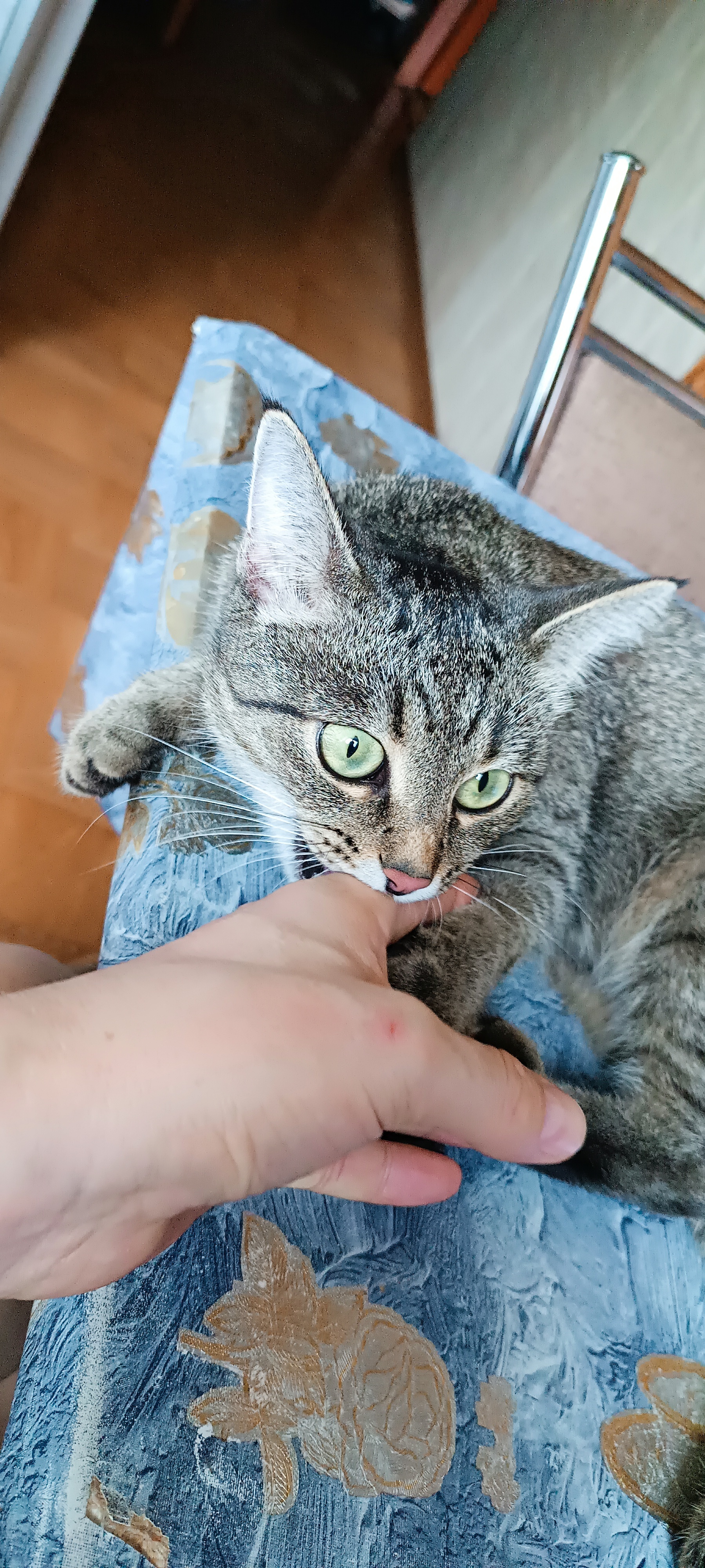 На следующий день снял швы, обработал места контакта шовной лигатуры раствором бриллиантового зелёного. Котяндра не дала высушить нанесенный раствор и быстро кинулась лизать место извлечения инородных материалов из своего маленького тельца, брыкаясь и царапаясь вырвалась из моих рук и ходила потом с зелёным языком. Иногда ловил на себе ее взгляды , в которых угадывалась некая интрига. Забегая вперёд скажу сразу- мне тоже пришлось несколько дней ходить зелёным))) Это была мстя))) Мы жеж ухо лечили каплями, а они такие неприятные, когда в ухо попадают. Лечили сразу и второе для профилактики.