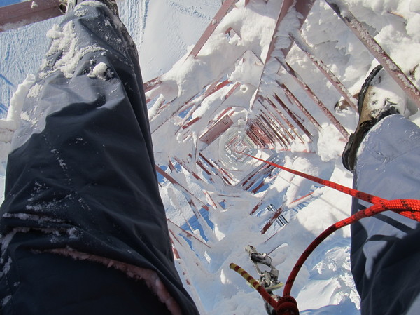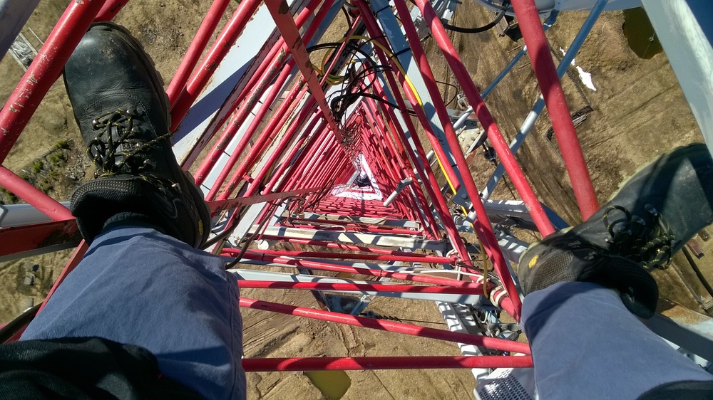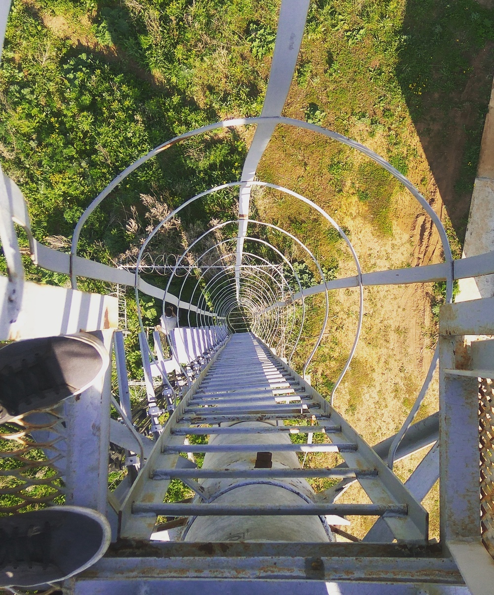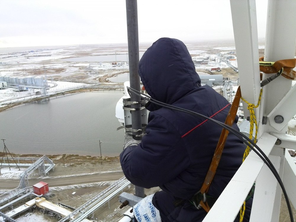 -слышь, Василич, а че это наш молодой полез на вышку?