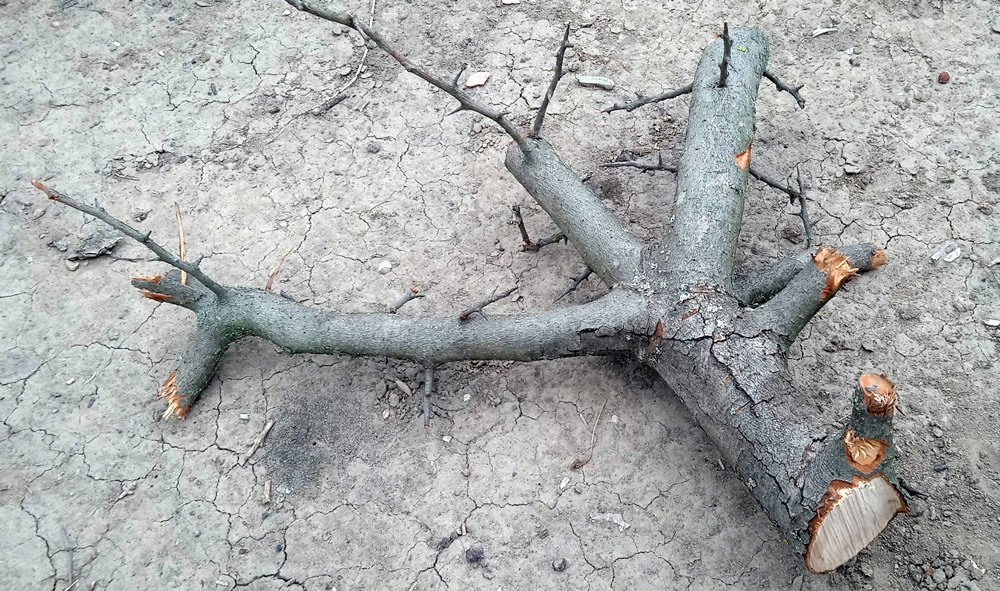 И тут совершенно случайно вспомнил, что весной спиливал в саду засохшую дикую грушу, и обрезок от нее приберёг для будущих поделок. Вот сейчас он мне и пригодится - из него можно сделать отличное топорище. За лето он окончательно высох, ни одной трещины не видно.