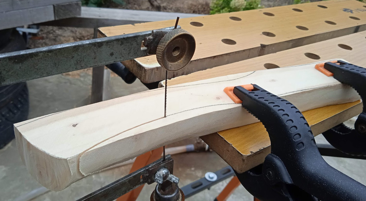 Ну а дальше начинается долгий и нудный процесс выпиливания при помощи старого доброго лобзика. Удовольствие, скажу вам, такое себе: оба вида этой древесины пилятся очень тяжело, будто не дерево пилишь, а камень. Толщина брусков при этом около 3 см.