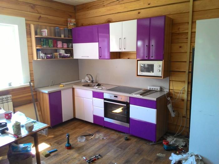 Вот такая кухня получилась в конечном итоге, по деньгам вышло примерно в 25-27 тысяч, точно не помню. Было это года 3-4 назад. В цену входит - фасады, ЛДСП, ручки, ножки, петли и прочая фурнитура, конфирматы (шурупы), раковина.