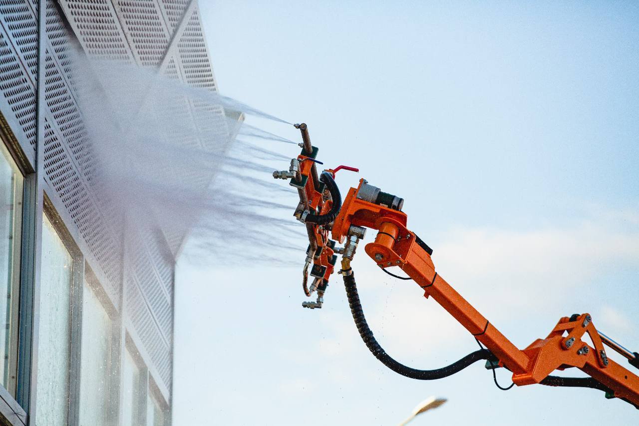 Фронтальный манипулятор ФММ 600 предназначен для мойки шумозащитных экранов, сводов тоннелей и многочисленных объектов дорожной инфраструктуры.