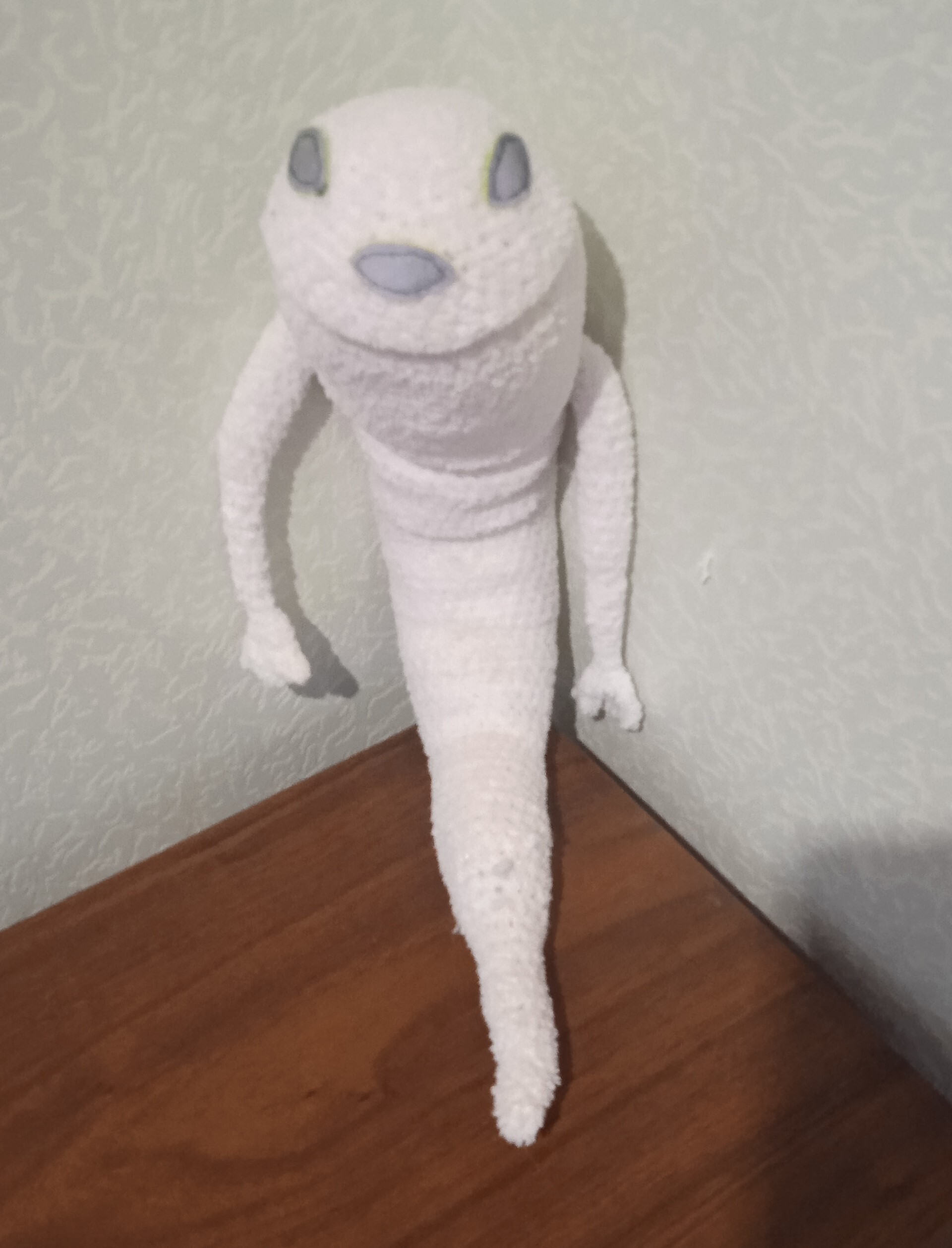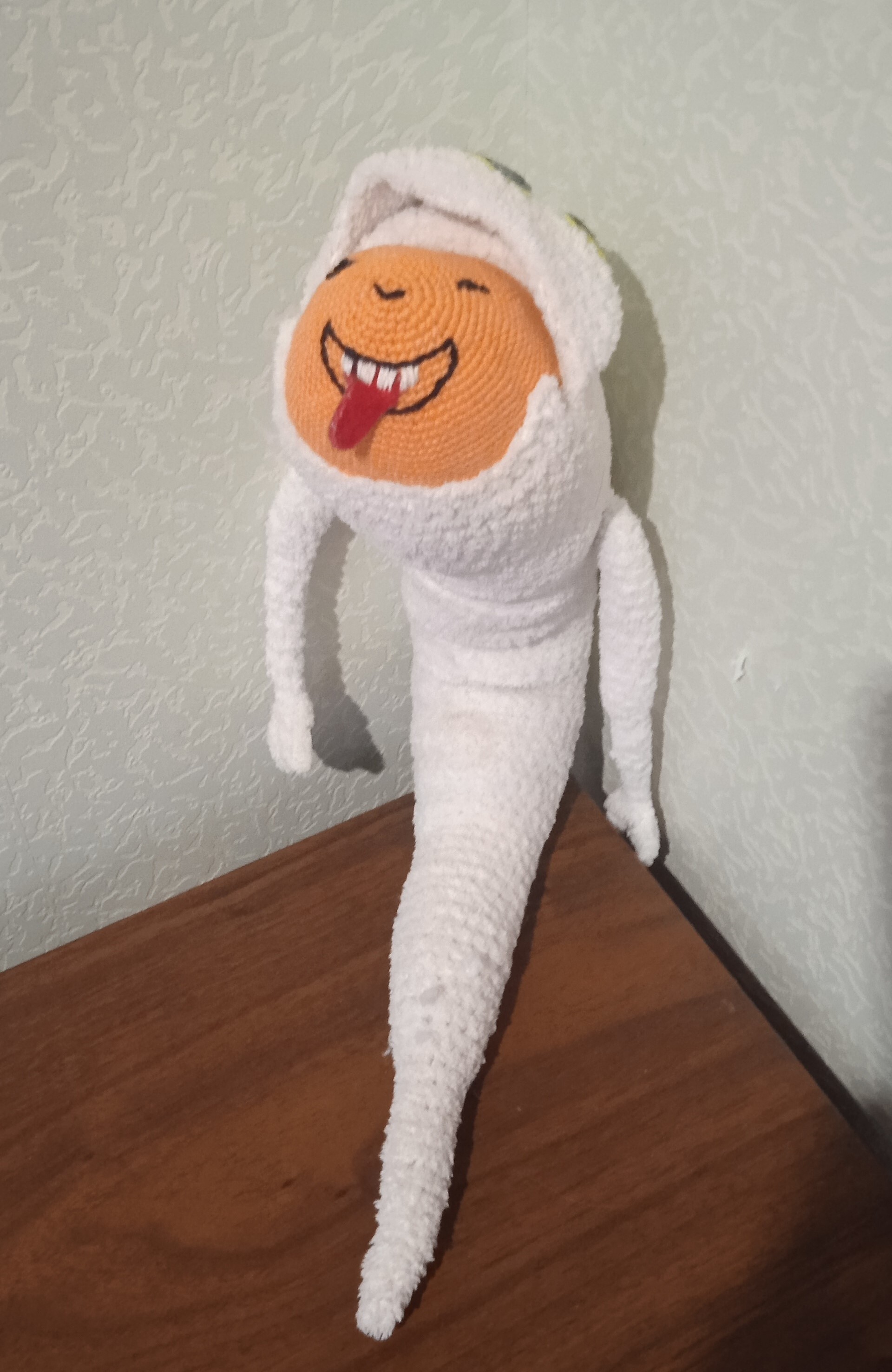 Заказал ребёнок жене связать мозгового червя. Не знаю как выглядят мозговые черви и откуда ребёнок такое услышал, но жена связала вот это.