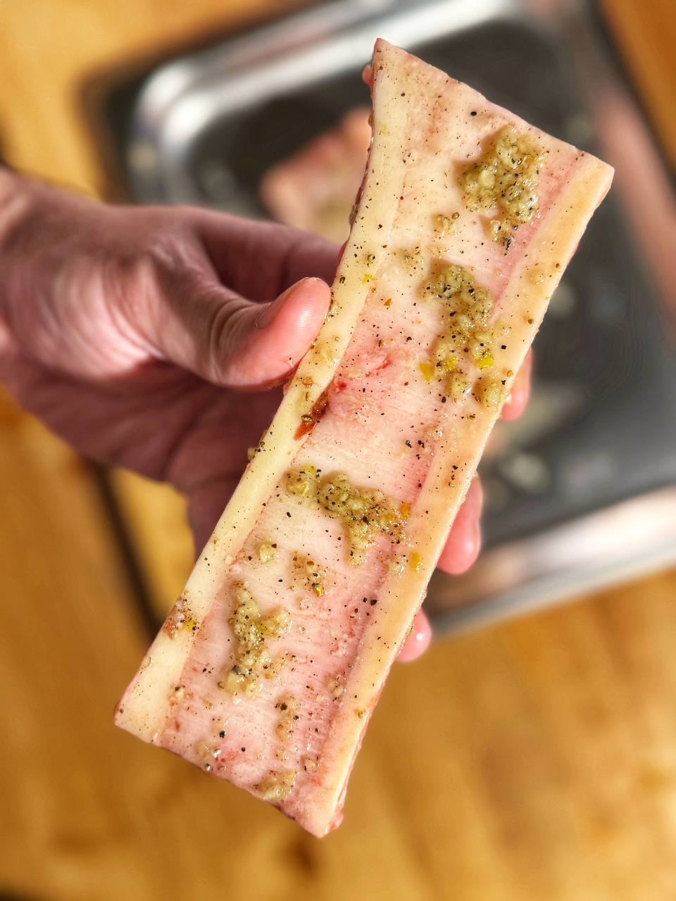 Первое, что нужно сделать, это смазать мозговые косточки маринадом. Смазывайте хорошо со всех сторон и даже со стороны кости. Оставьте их мариноваться на 20–30 минут при комнатной температуре.