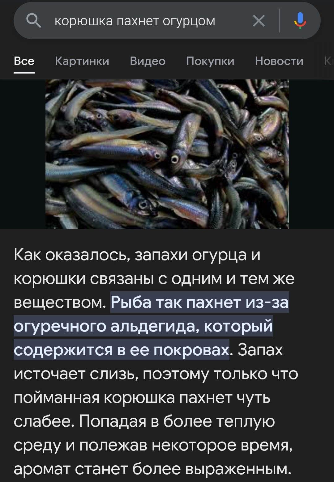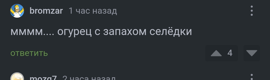 5 Аноним Может кому будет интересно 1 год назад Из этого поста на пикабу Дополню этот комментарий, про огурец с запахом селедки. Бывает наоборот, рыба пахнет огурцом, сам ловил, но называется она у нас "сиг" [моё] Комментарии Огурцы Рыба Факты Познавательно Длиннопост Скриншот 1 Ещё 0