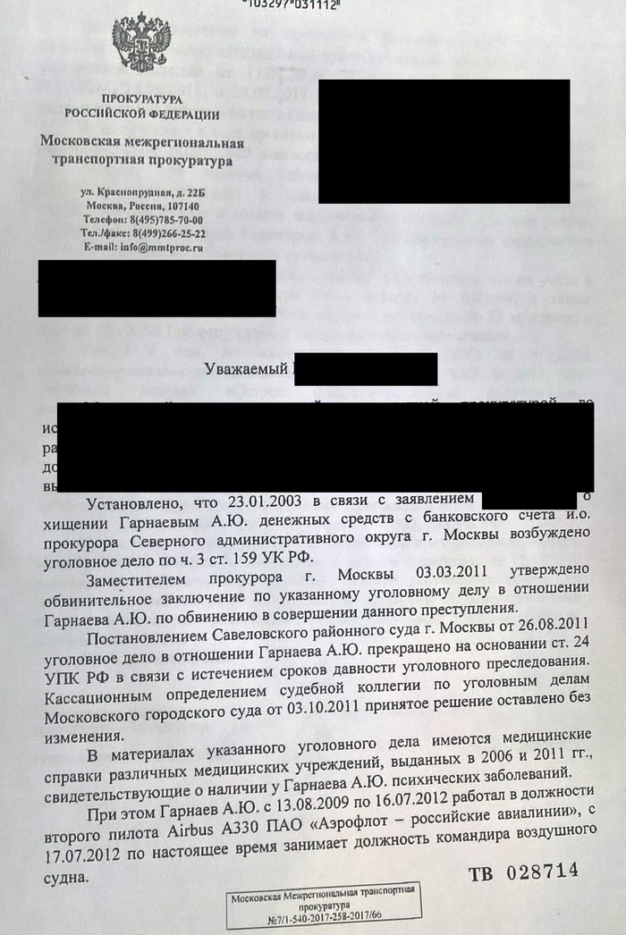 Представляем вашему вниманию – Гарнаев Александр Юрьевич – КВС «Аэрофлот», пилот дальнемагистрального лайнера Airbus А330. Человек состоящий в учете в психиатрическом диспансере, совершавший попытки самоубийства и хронический алкоголик, имеющий массу проблем со здоровьем. Все эти факты имеют документарное подтверждение, но полностью игнорируются руководством Аэрофлота, представителями врачебно-летной экспертной комиссии и транспортной прокуратурой.
