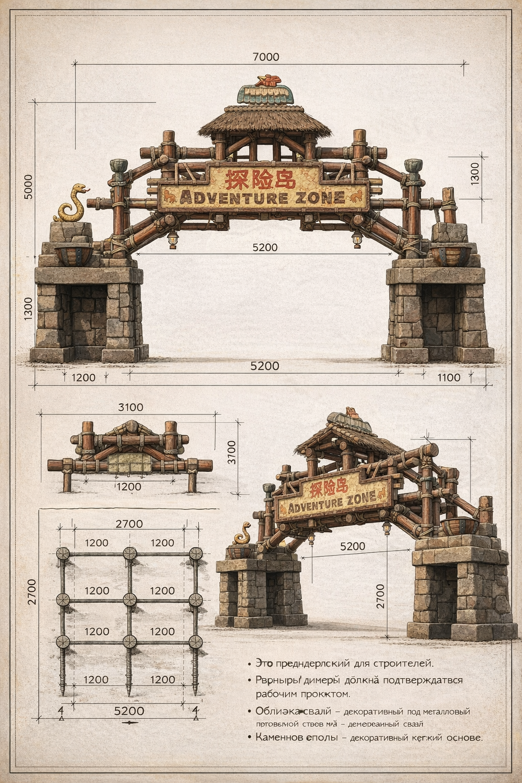 Уже месяц меня не покидает мысль о входной группе нашего лагеря. Я в восторге от оформления зоны «Adventure Isle» в Диснейленде. Собрал себе несколько инсталляций в галерею, которые, со временем, планирую установить в лагере.