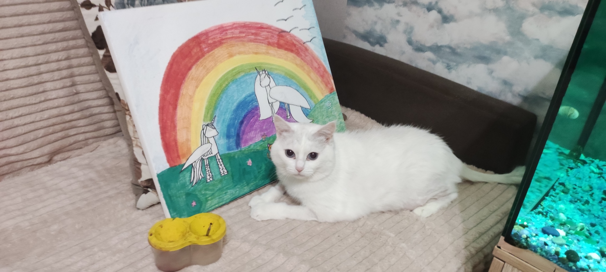Знакомьтесь, моя киска Йети! 13 лет даме. Беспородная белоснежная голубоглазая... 13 лет назад приснился сон, что у меня есть белый кошак по имени Йети. Примерно через несколько дней сон стал вещим. Так и живём, воюем, дружим и мурлыкаем