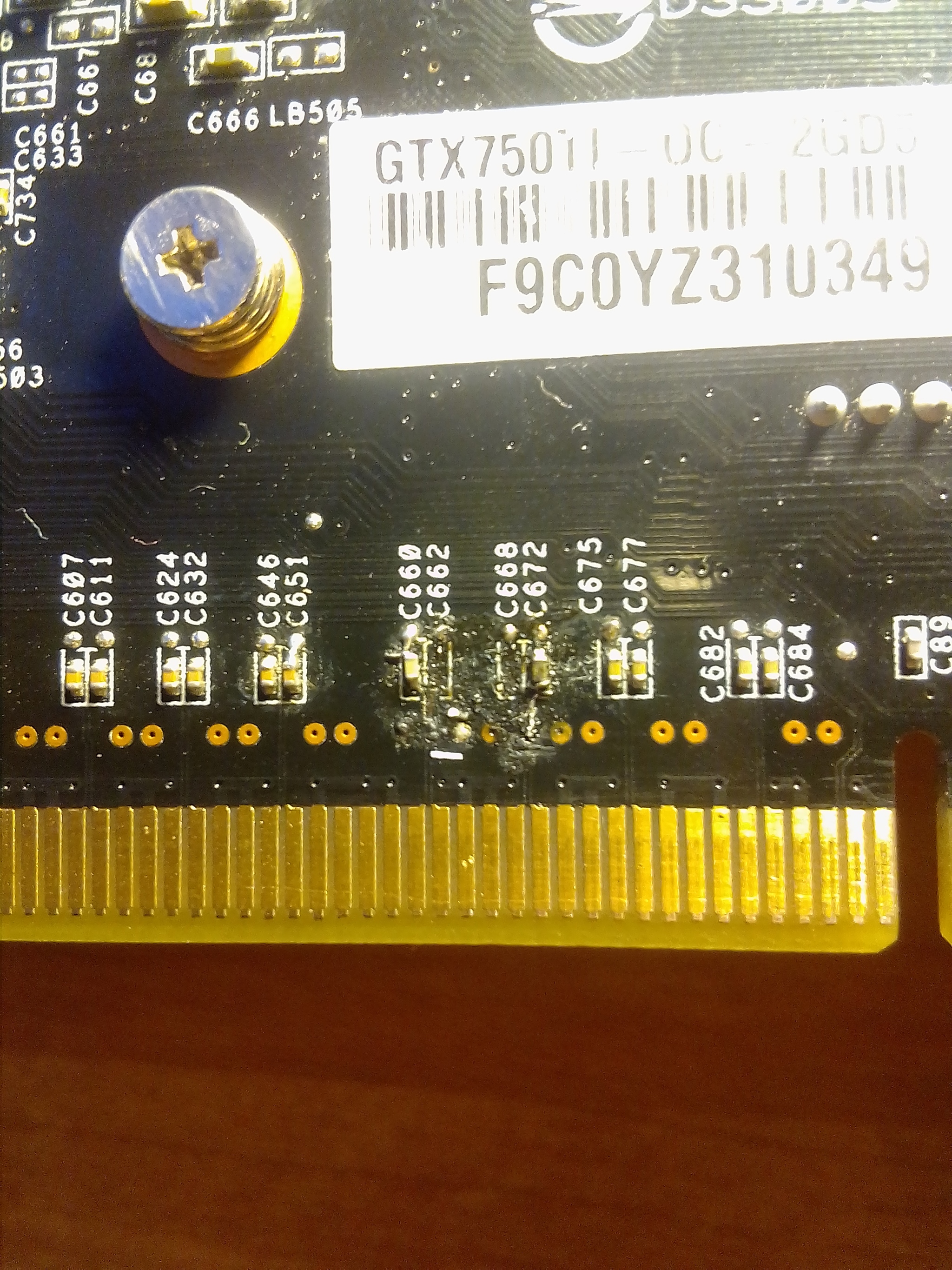 Взял Gtx750 ti за символическую плату, естественно с рук и при детальном осмотре выявилась сомнительная пайка на компонентах платы. Хотелось бы узнать от разбирающихся людей, безопасно ли будет использовать эту видеокарту или вставлять в материнскую плату впринципе