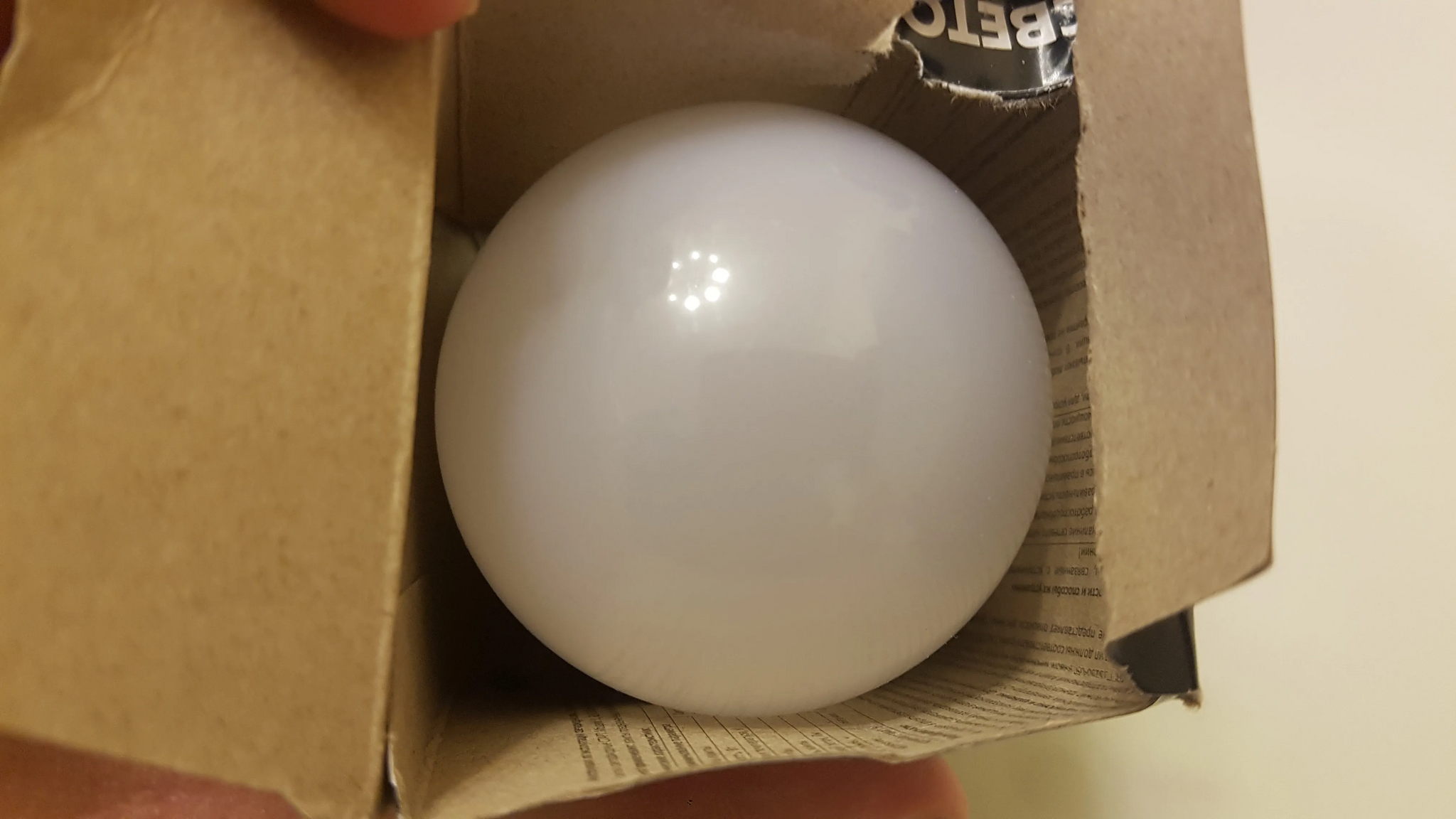 Недавно зашел в "Светофор" - тот самый магазин где можно найти всё: от зубной щётки до цепи для якоря. И вот там мне попалась лампочка, которая выглядела подозрительно "интересно". Коробку, правда, я сам помял - положил на дно пакета под что-то тяжёлое. Классика.