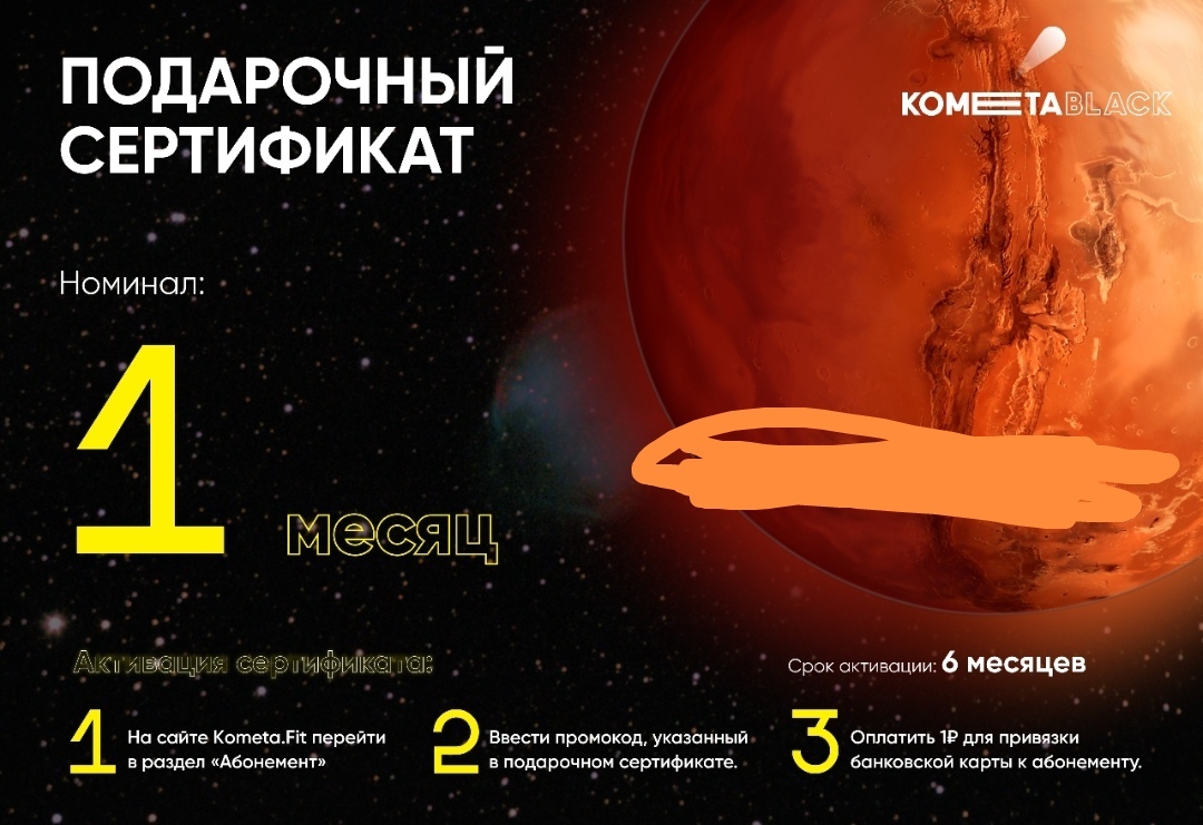 UPD Сертификат выдан не самим КометаФит. Сертификат просто один из призов, в конкурсе другой организации.